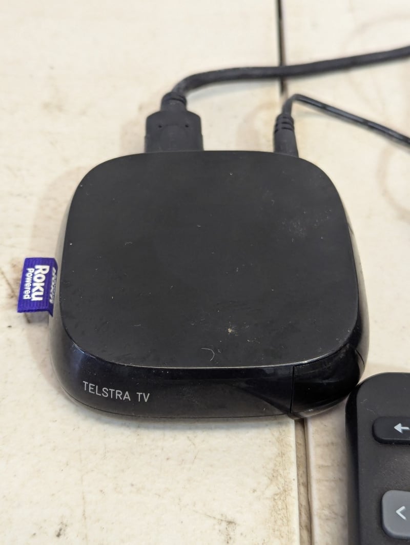 Telstra TV box with 2 remotes, Roku Powered SOLD AS LOT
