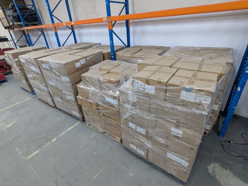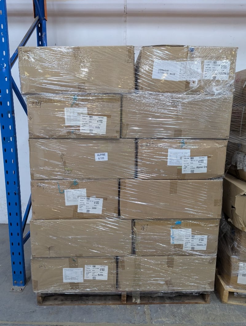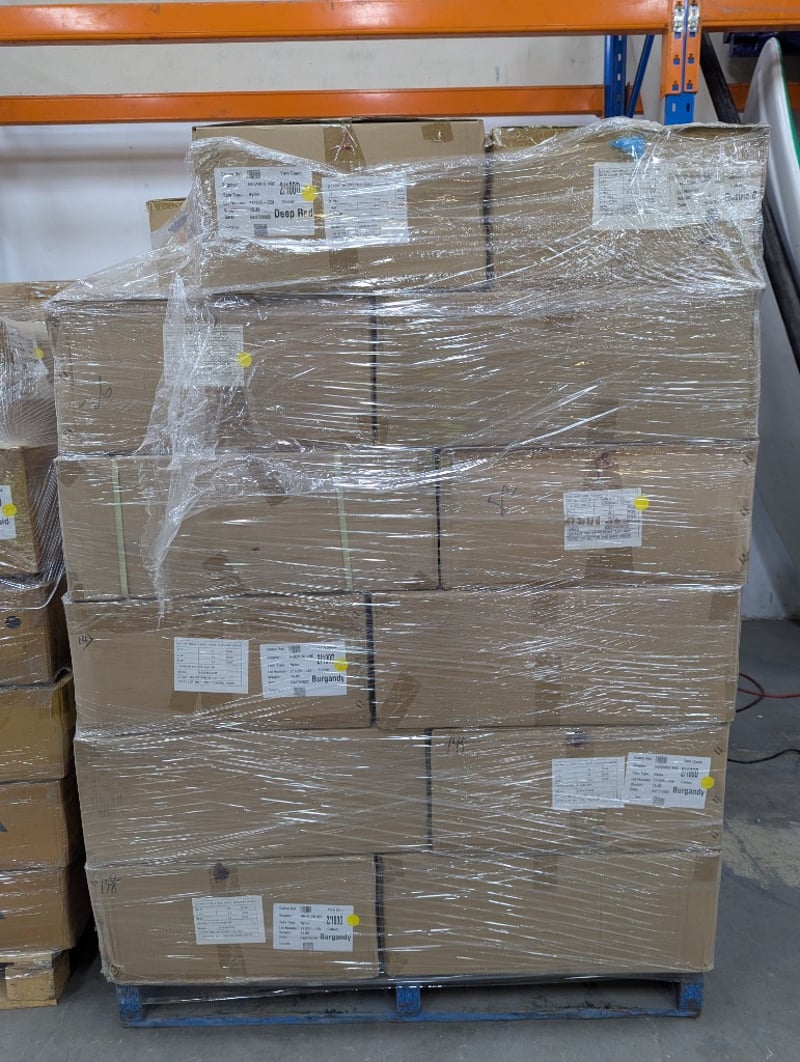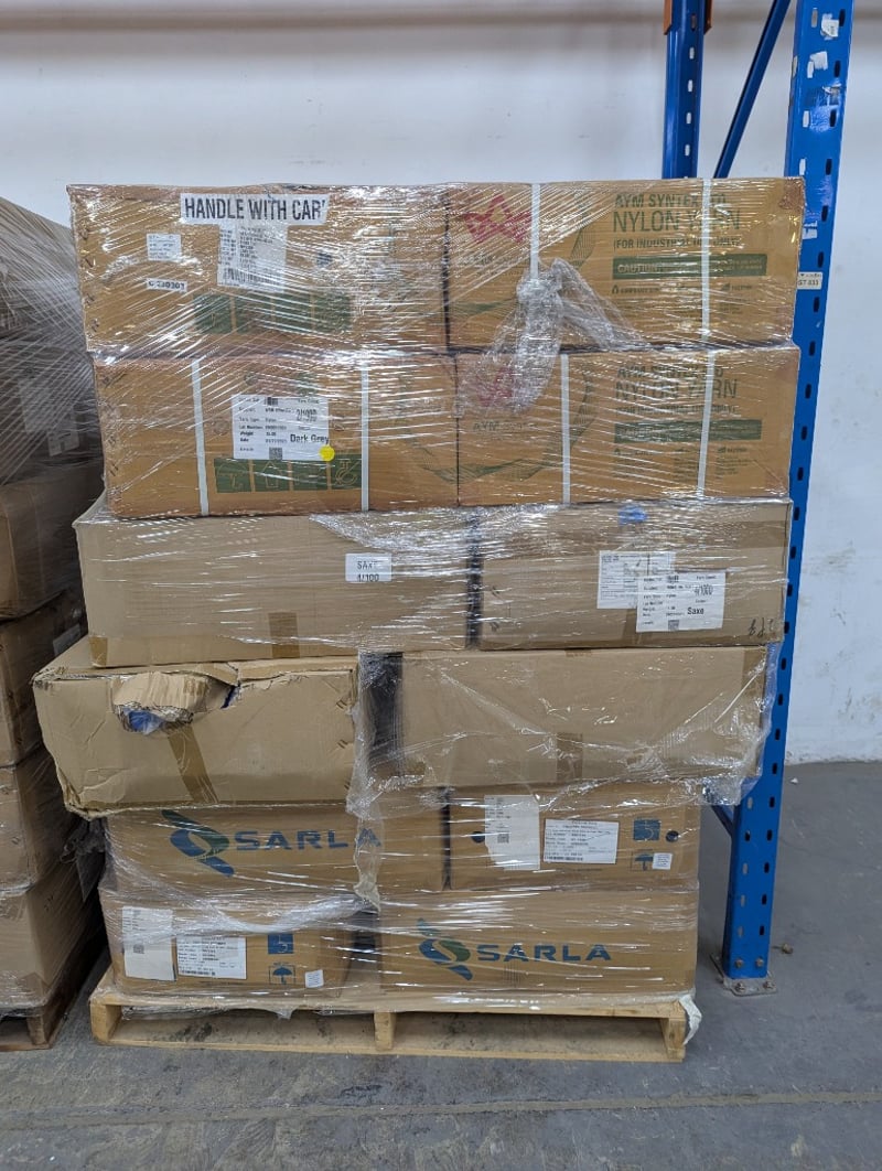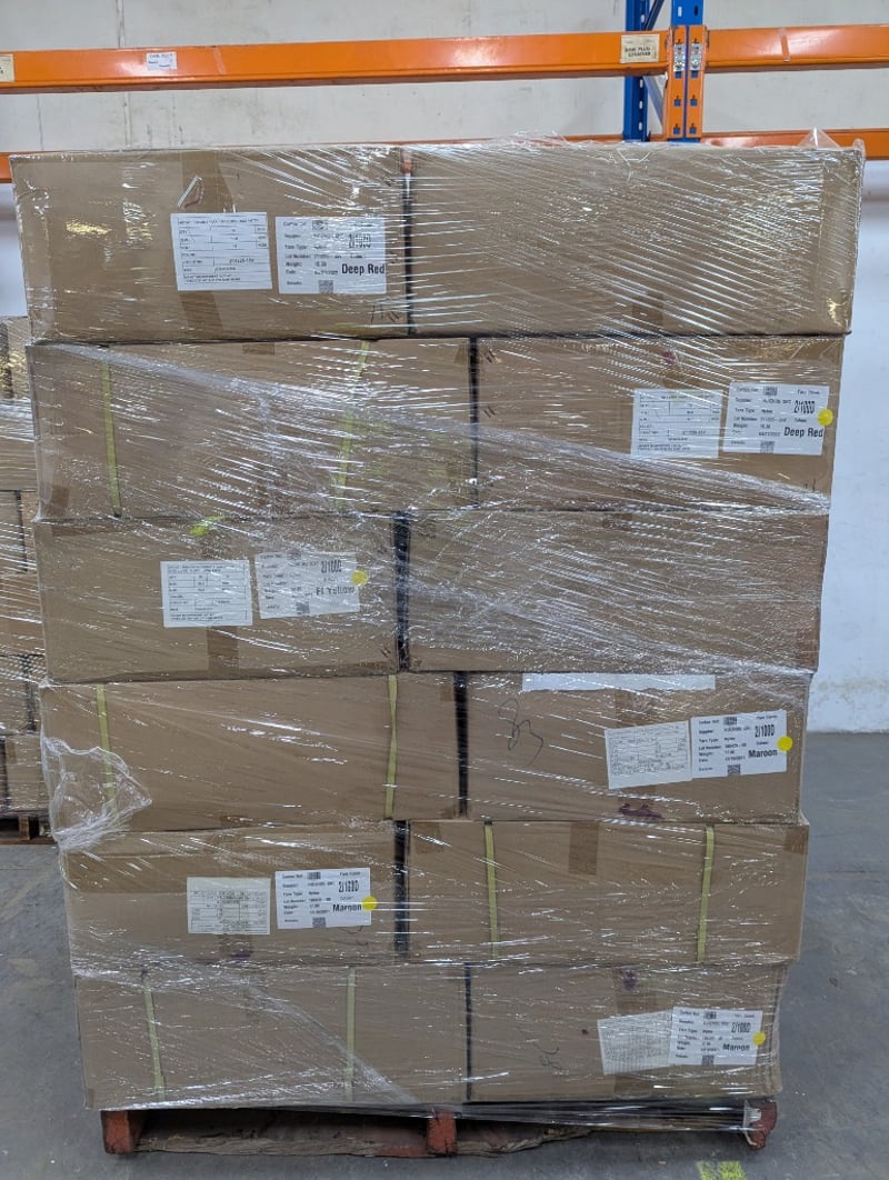 9 Pallets of Assorted Boxes of Yarn, various sizes and colours Colours include Light Purple, Yellow, Emerald, Forest Green, Gargoyle, Maroon, Deep Red and more PLEASE NOTE : Due to the volume of this item, shipping is not available. Local collection only. SOLD AS LOT