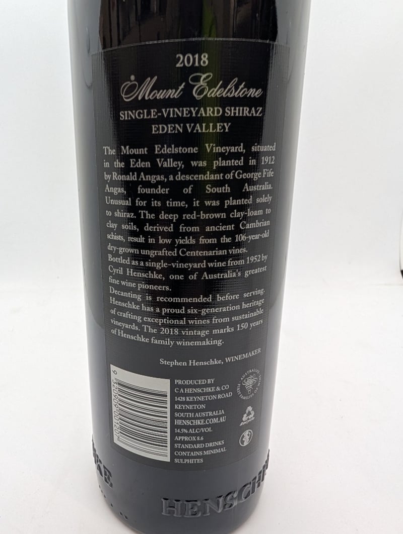 1 x Bottle Of Henschke Mount Edelstone Vineyard Shiraz - 2018 - 14.5% alc/vol, 750ml