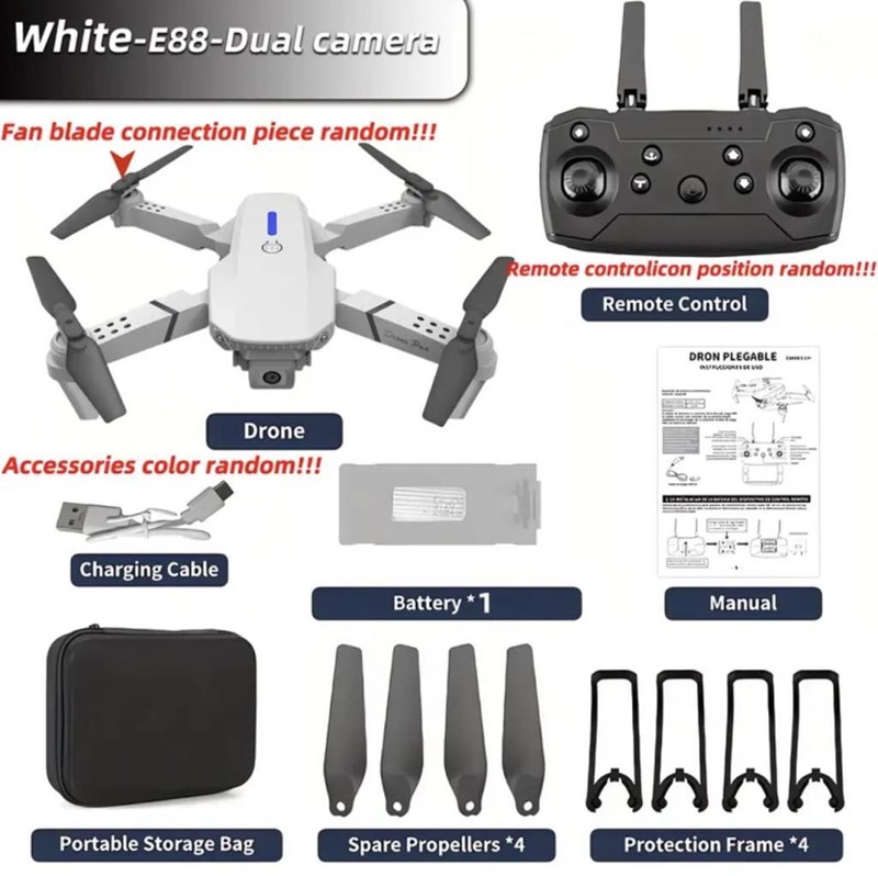 E88 HD Foldable Remote Control Drone with Camera, Easy Take-off and Landing with One Click, Remote Control Quadcopter, Colour White