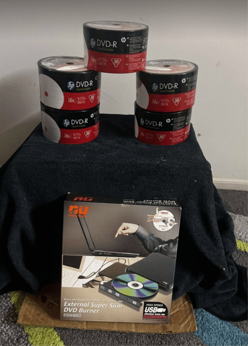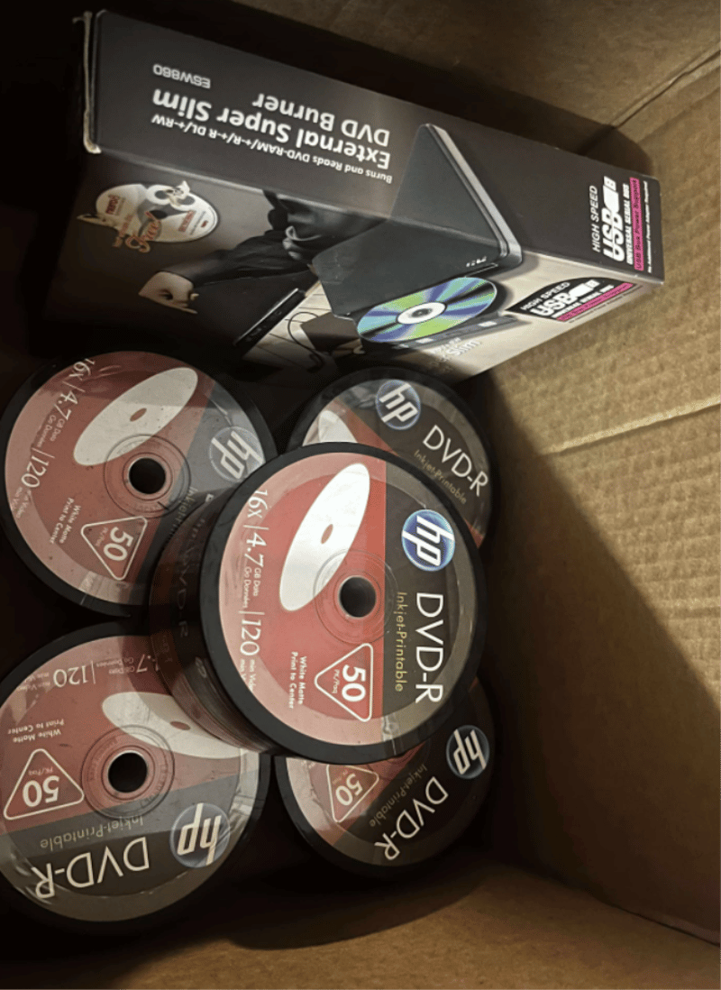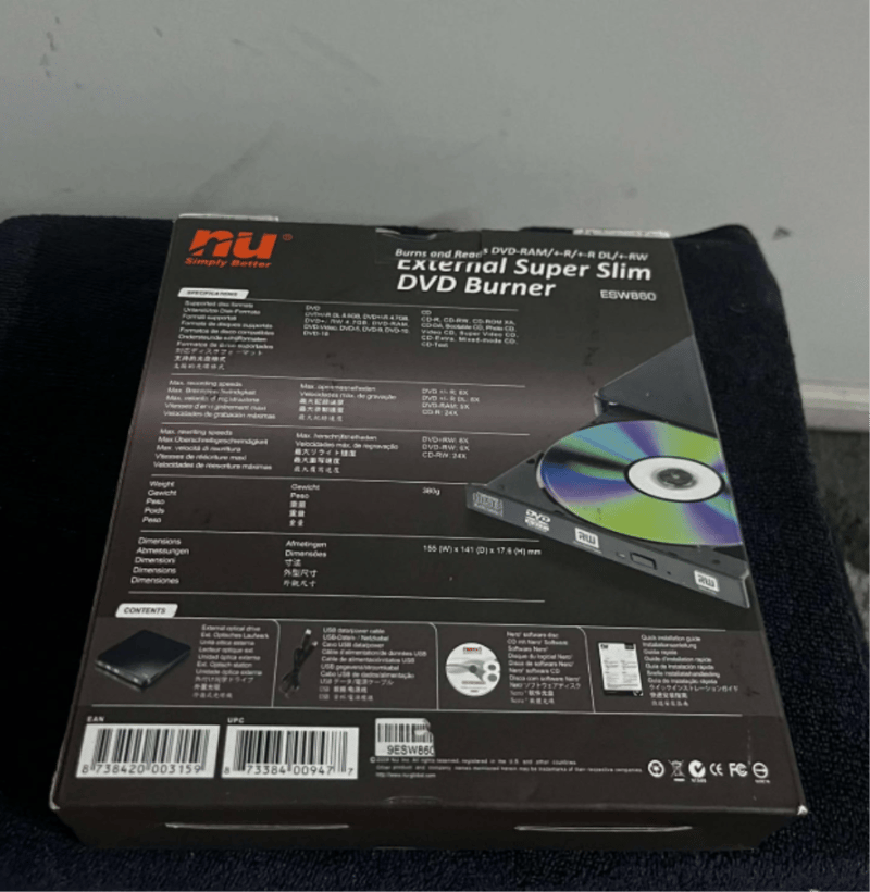 External Super Slim DVD Burner with 5 x HP DVD-R inkjet – Printable packs. Refer t o images.