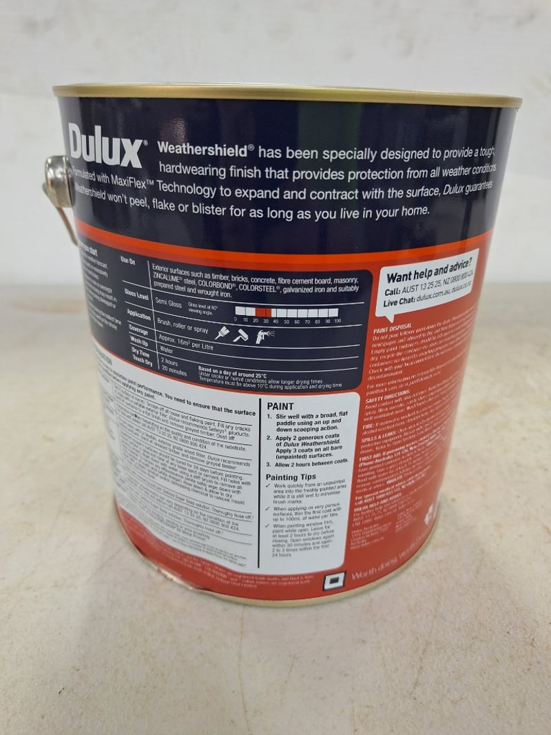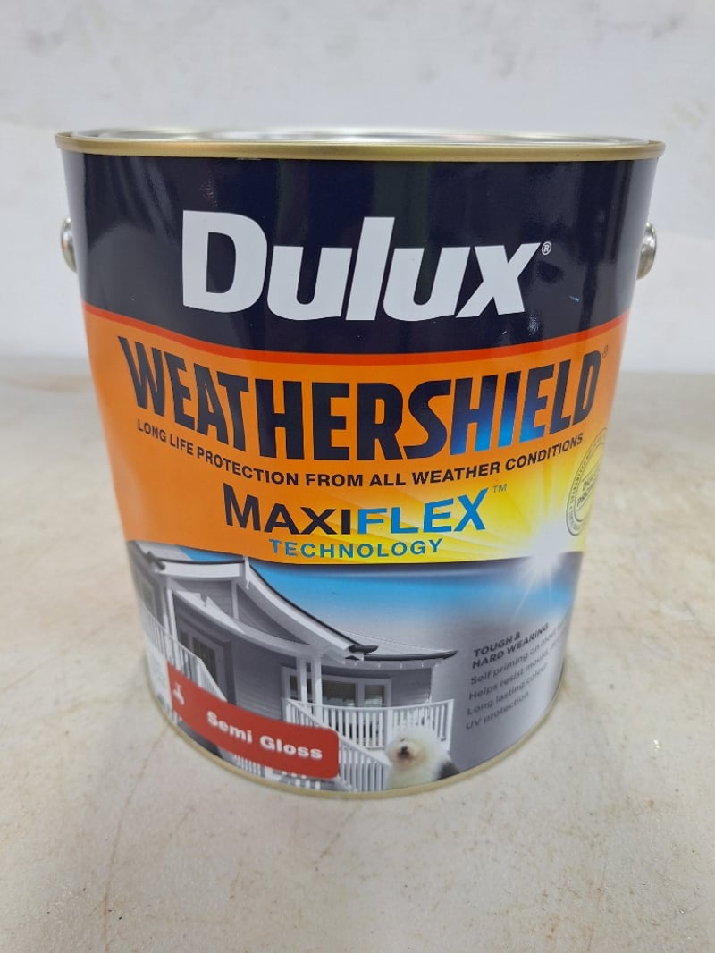 Paint, Dulux, WeatherShield MaxiFlex Technology, Semi Gloss, Vivid White 4LBID PER LITRE, MUST TAKE 4 LITRES