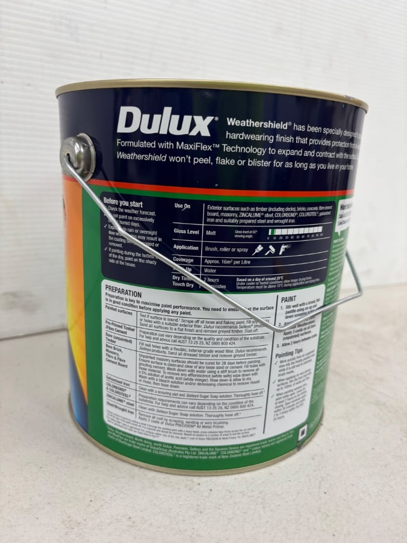 Paint, Dulux Weathershield, Maxiflex, Matt, Vivid White, Untinted 4 Litres