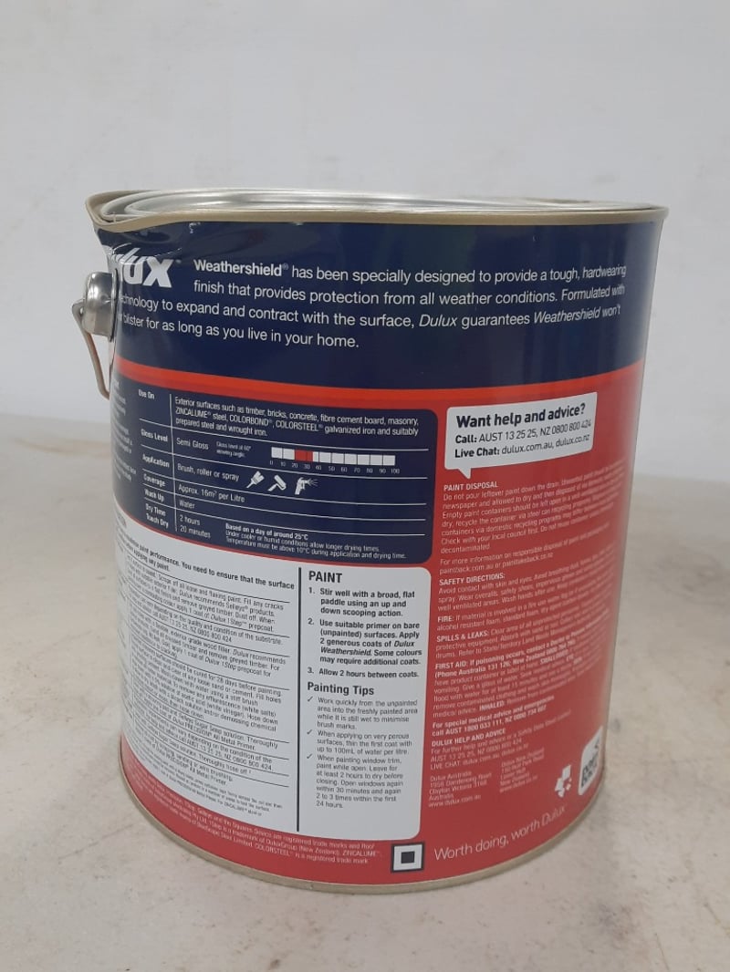 Dulux Weathershield Semi Gloss extra bright 4LBID PER LITRE, MUST TAKE 4 LITRES