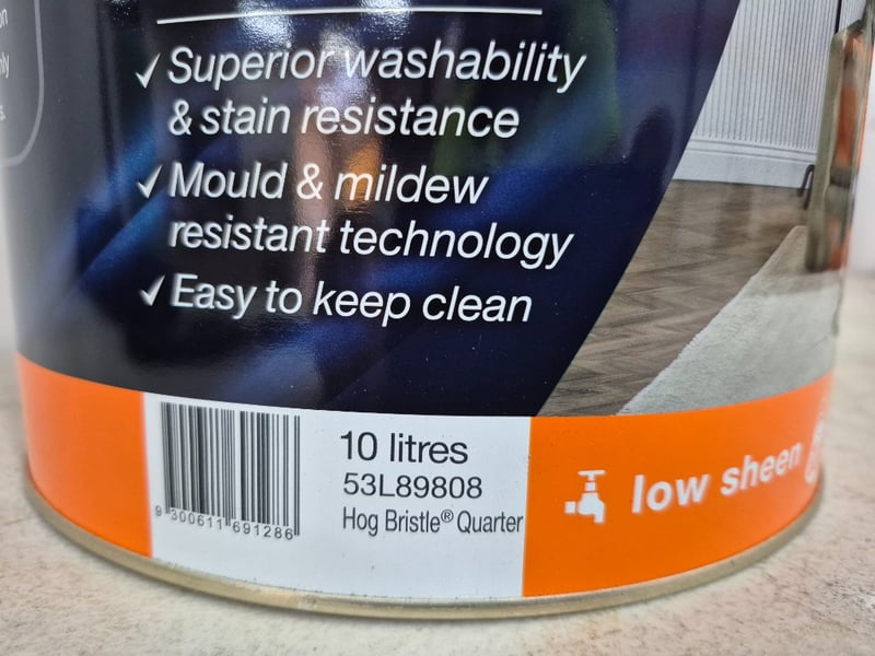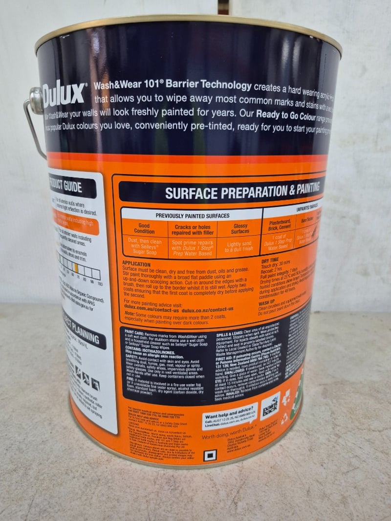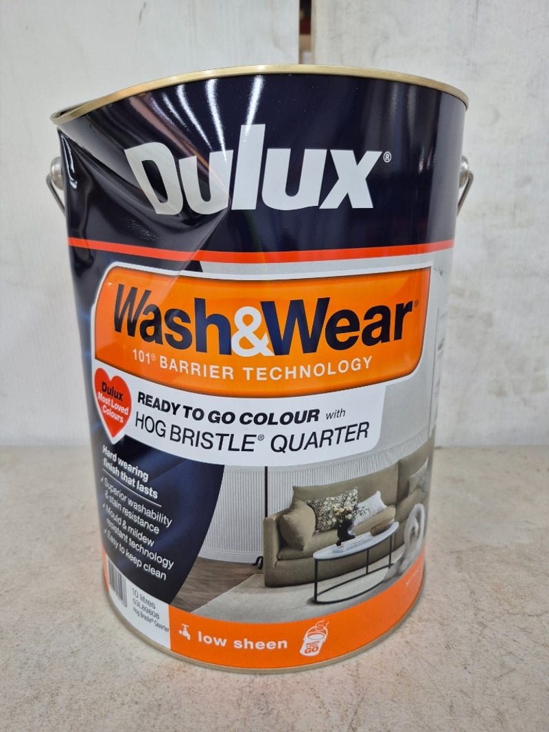 Paint, Dulux, Wash&Wear, 101 Barrier Technology, Low Sheen, Hog Bristle Quarter, 10LBID PER LITRE, MUST TAKE 10 LITRES