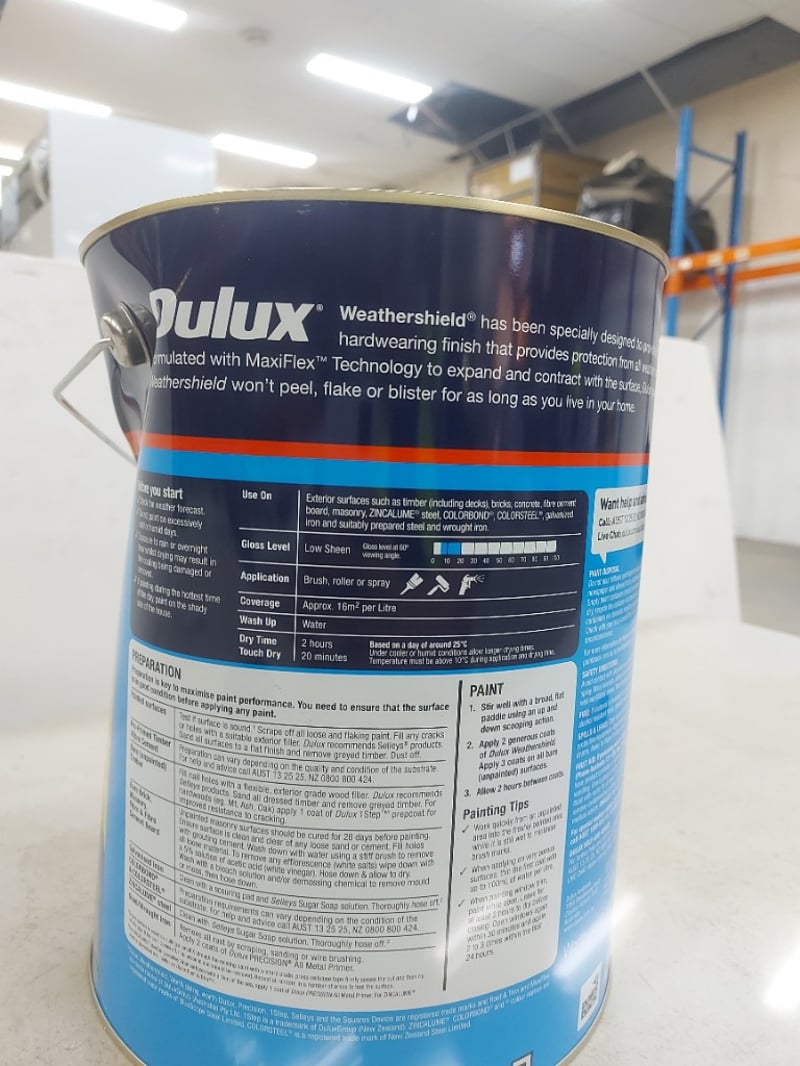Paint, Dulux, WEATHERSHIELD, Black, low sheen, 10LBID PER LITRE, MUST TAKE 10 LITRES