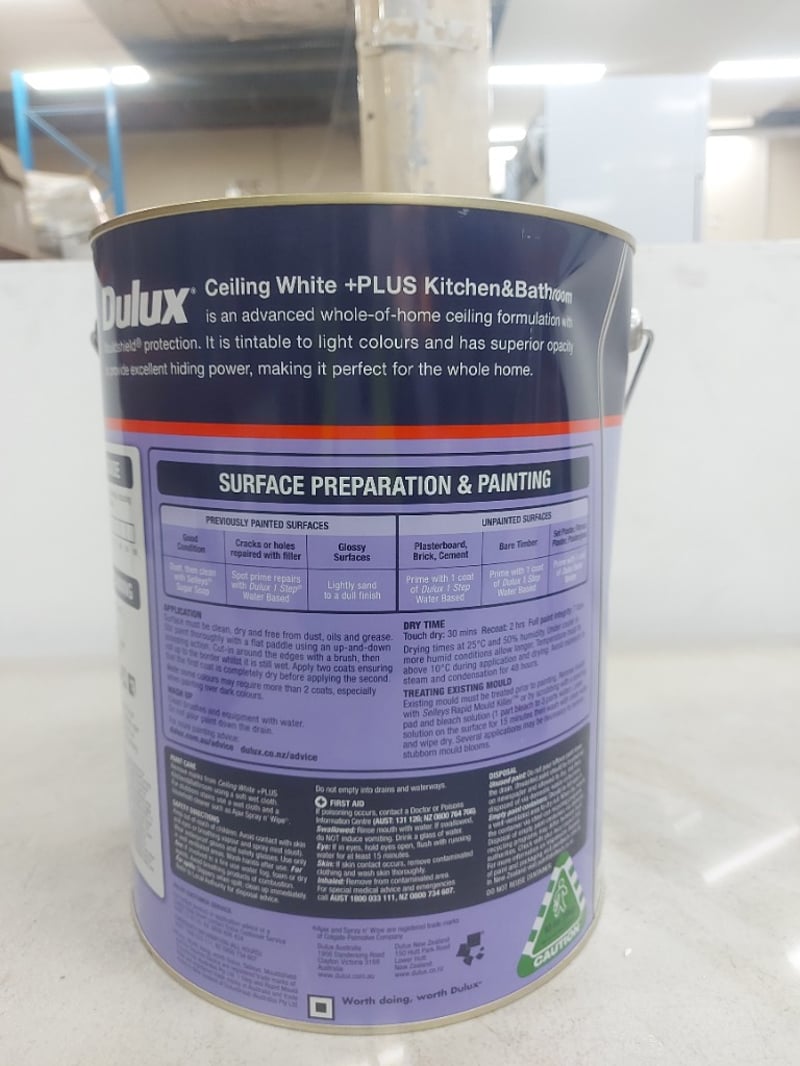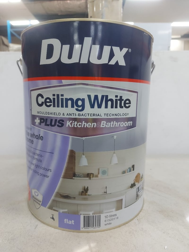 Paint, Dulux, Ceiling White, White, flat, 10L