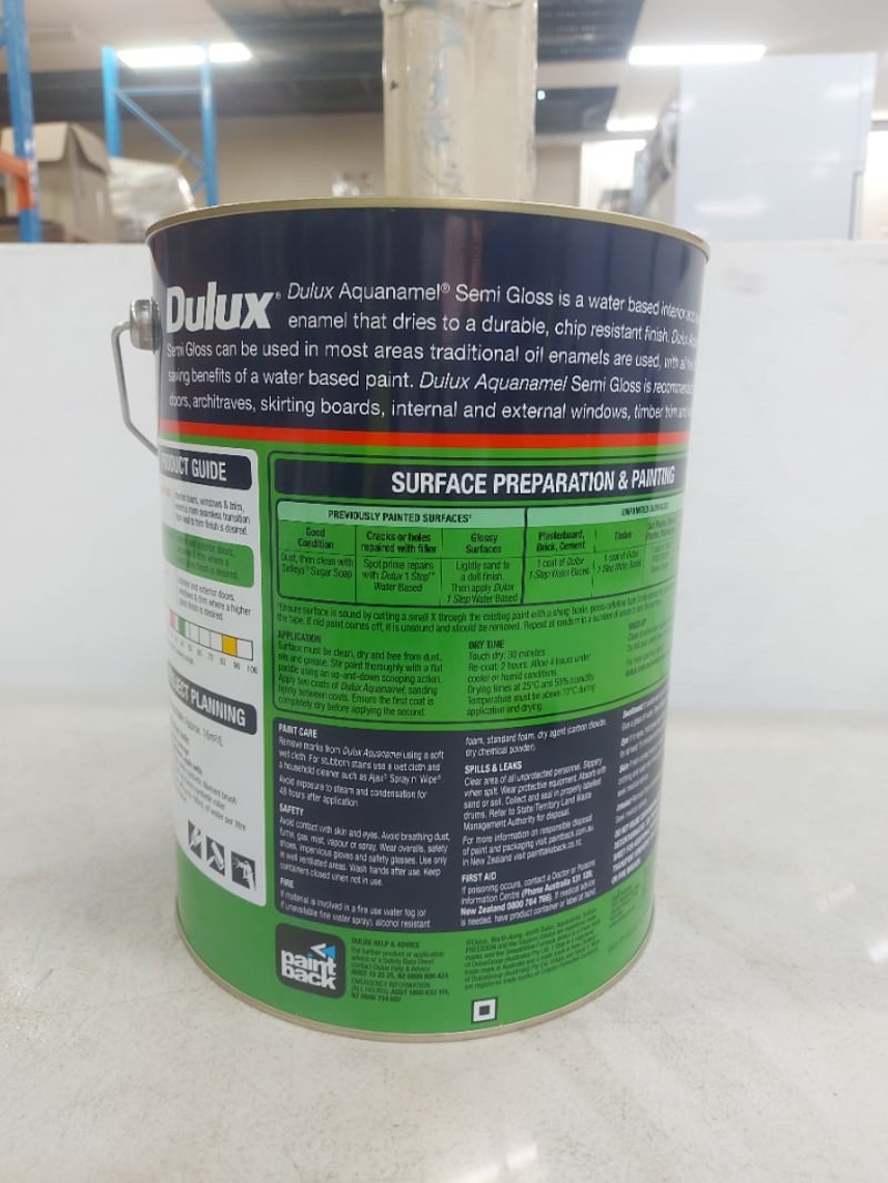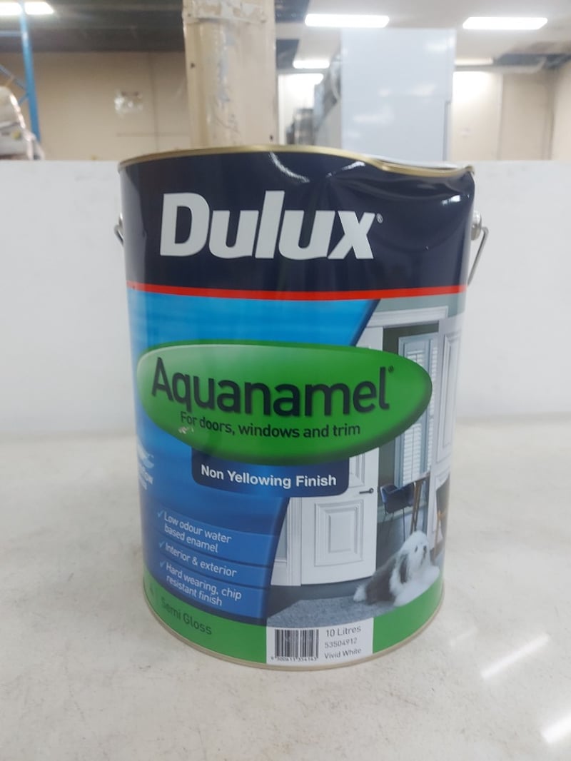 Paint, Dulux, Aquanamel, Vivid white, Semi Gloss, 10LBID PER LITRE, MUST TAKE 10 LITRES