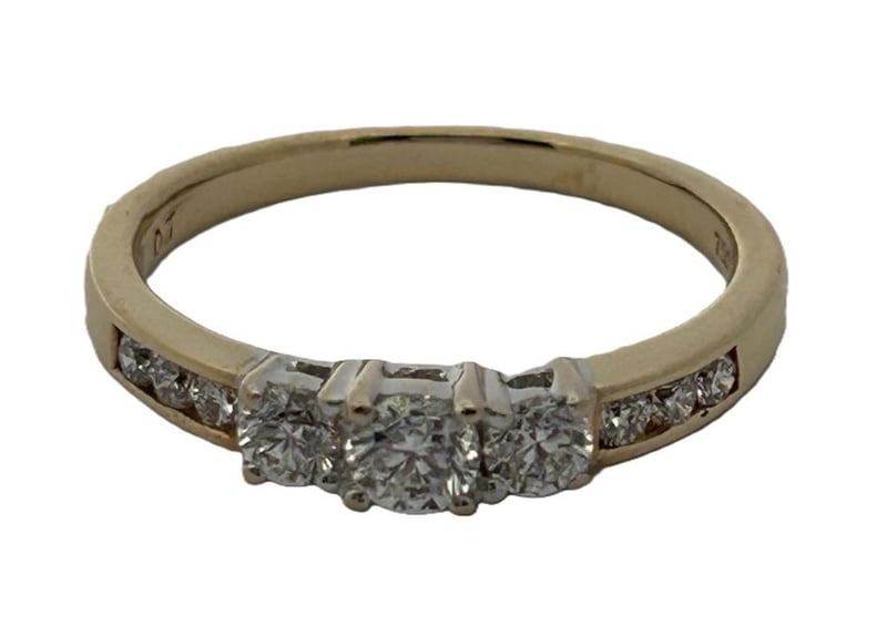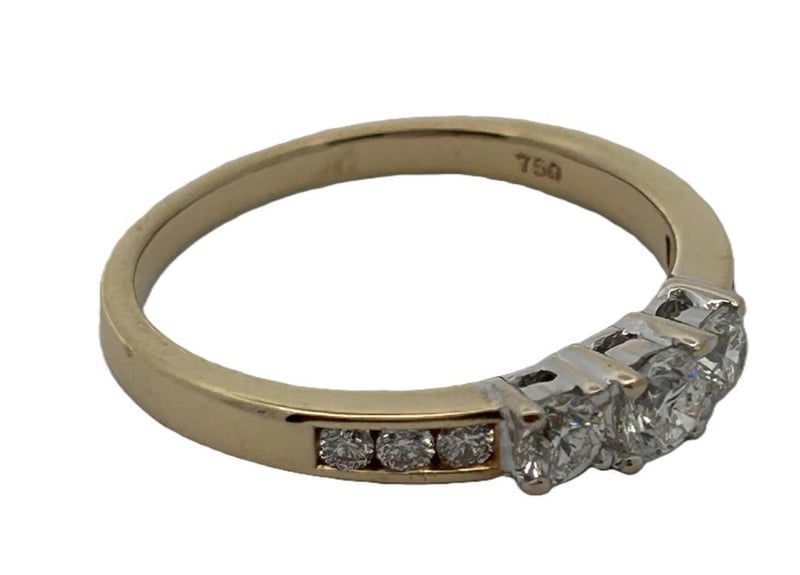 18CT YELLOW GOLD 0.42CT DIAMOND RING, 3 ROUND BRILLIANT CUT DIAMONDS 4 CLAW SET IN CENTRE ROW WITH 3 ROUND BRILLIANT CUT DIAMONDS CHANNEL SET EITHER SIDE, ESTIMATE TOTAL DIAMOND WEIGHT 0.42CT, STAMP 750, RING WEIGHT 2.7 GRAMS. THIS ITEM HAS BEEN PROFESSIONALLY VERIFIED AS A GENUINE PRODUCT AND COMES WITH ACCOMPANYING 3RD PARTY CERTIFICATE OF AUTHENTICITY