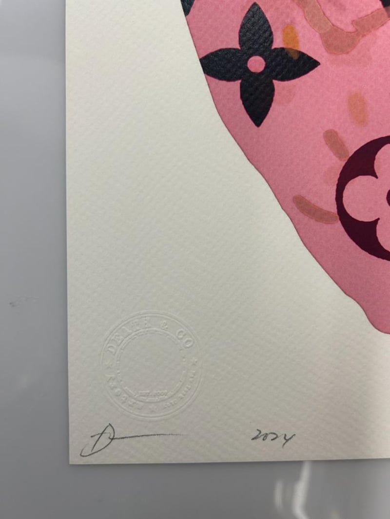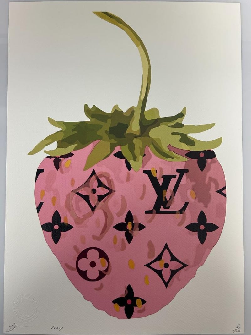DEATH NYC SIGNED STREET ART PRINT 'STRAWBERRY/LV STYLE' LIMITED EDITION, SIGNED LOWER LEFT, NUMBER 8/100 LOWER RIGHT, 300 MGS FINE ART PAPER, EMBOSSED WATERMARK LOWER LEFT IN IMAGE, IMAGE MEASURES 42X26.5CM, TOTAL SHEET MEASURES 45 X 32CM. CERTIFICATE OF AUTHENTICITY PROVIDED BY DEATH NYC.Condition: Good - Refer To Images997339+26