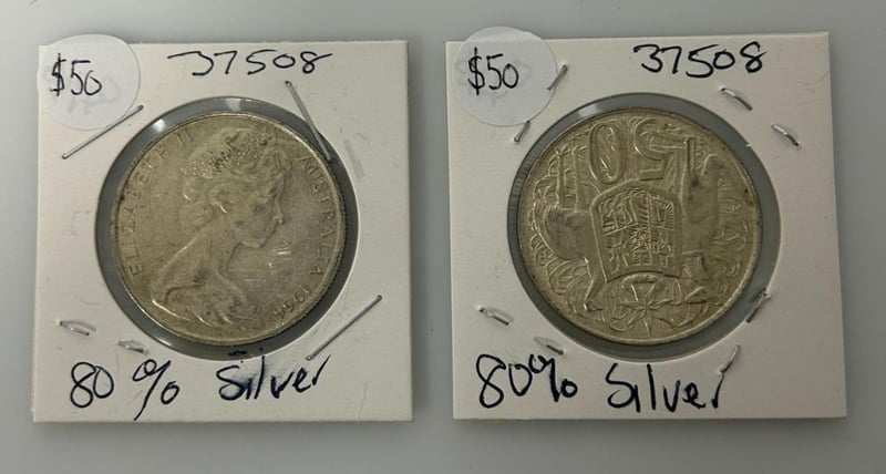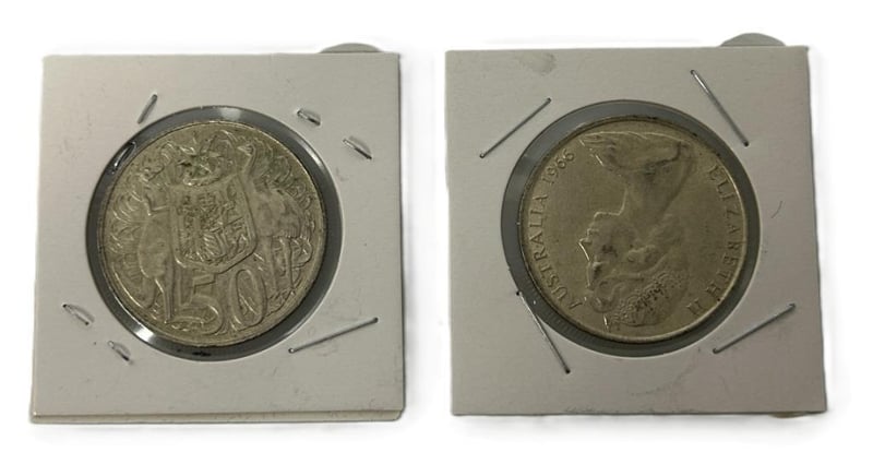 2 X 1966 AUSTRALIAN 50 CENT COIN STRUCK IN 80% SILVER, FEATURING QUEEN ELIZABETH II ON THE OBVERSE AND THE AUSTRALIAN COAT OF ARMS ON THE REVERSE. THIS COIN WAS PART OF THE FIRST DECIMAL SERIES AND WITHDRAWN DUE TO ITS HIGH SILVER CONTENT. EXCELLENT CIRCULATED CONDITION WITH VISIBLE DETAIL AND LIGHT SURFACE WEAR. HIGHLY COLLECTIBLE EARLY DECIMAL ISSUE.Condition: Good - Refer To Images997339+127