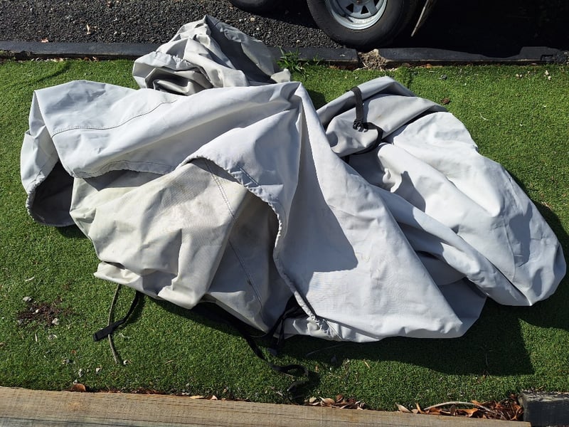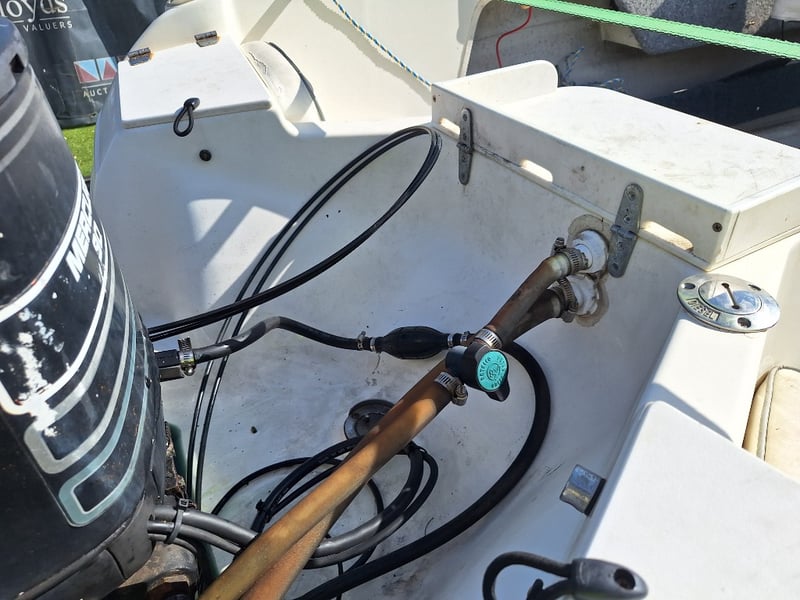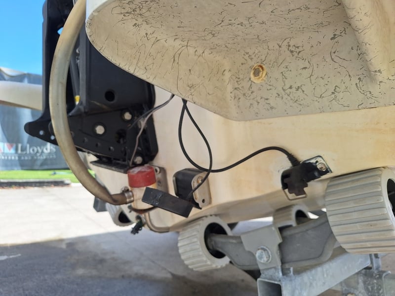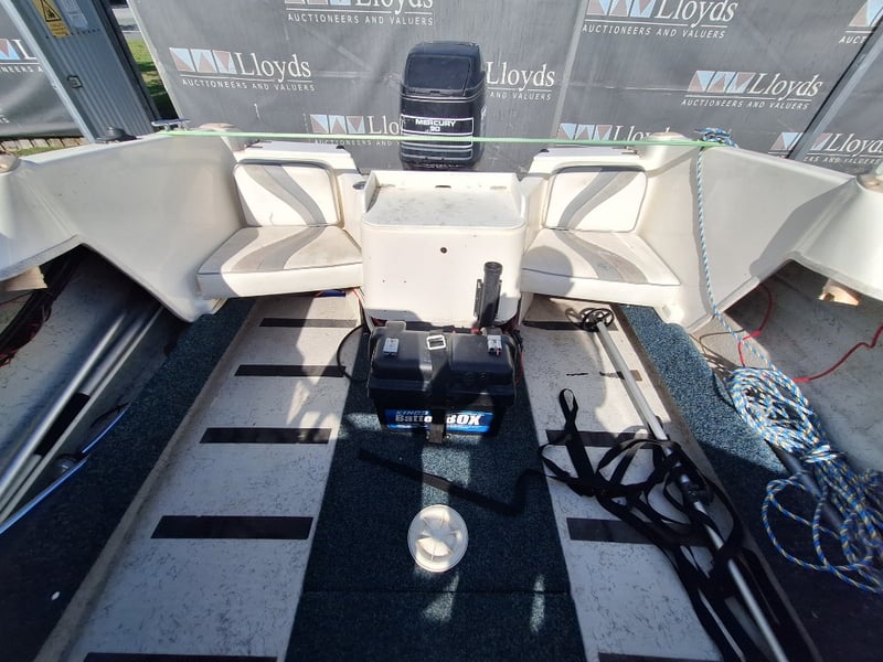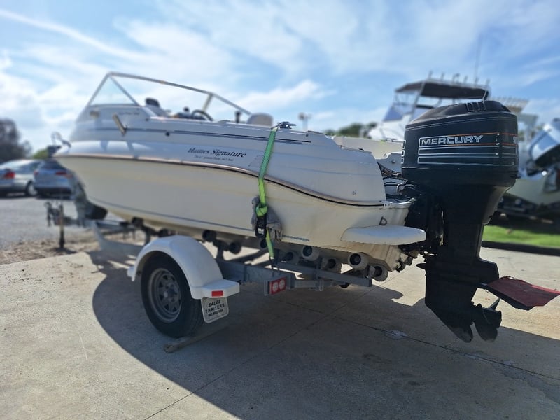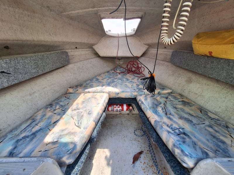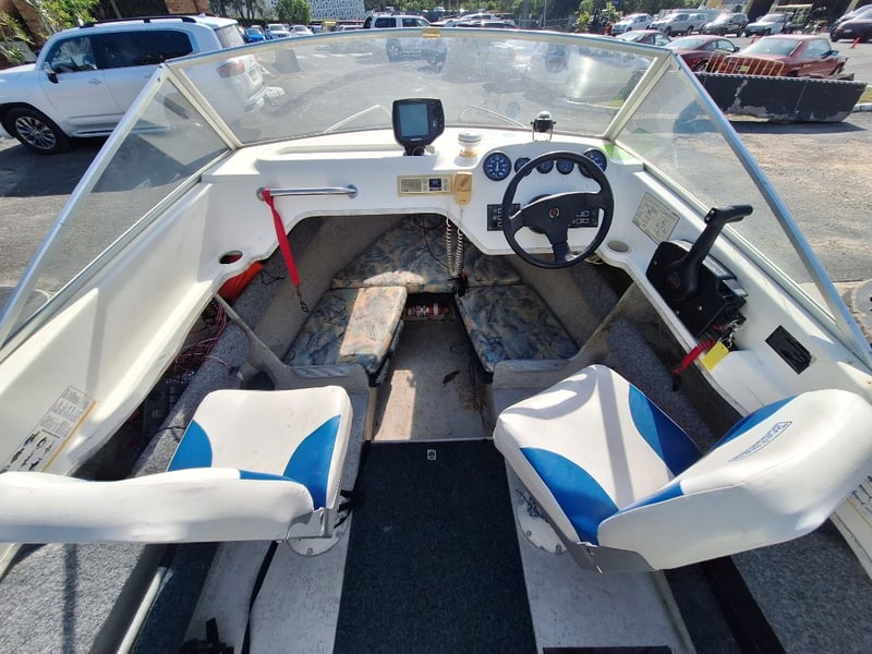 Description: Anchor With Rope, Battery Isolator, GME VHF Radio, Humminbird Sounder, Compass, Gauge Cluster, Console Switches (Unknown Working Condition), Boat Cover