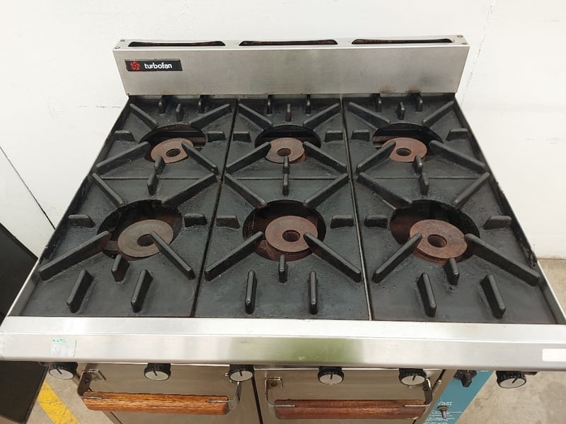 Commercial Stainless Steel Oven With Stove Top, With Drip Tray, Gas Powered, Turbo Fan, Dimensions 90cm(W)×82cm(D)×105cm(H)