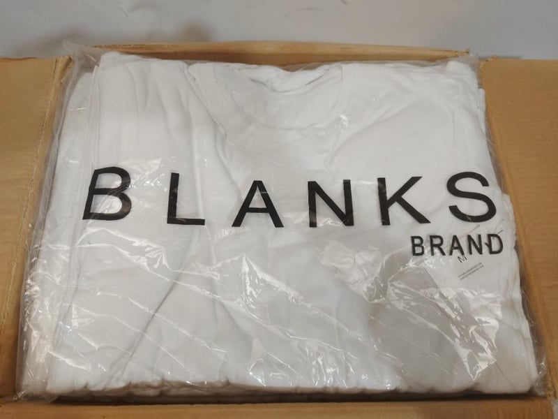 Shirts, Blanks Brand, White Tee, Womens, Size M, Qty 10 per pack, 5 Packs Per Box.
