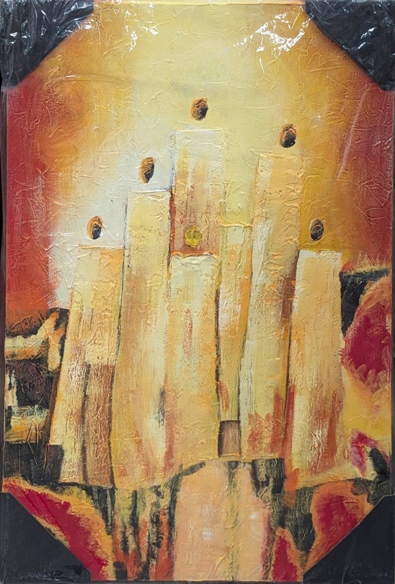 EIGHT OIL PAINTING ON CANVAS ARTWORKS Item Size: Height: 90cm, Width: 60cm Artwork Features Set Of Candle Style Imagery Artwork Stretched And Ready To Hang Condition: Good - Refer To Images 584844+58