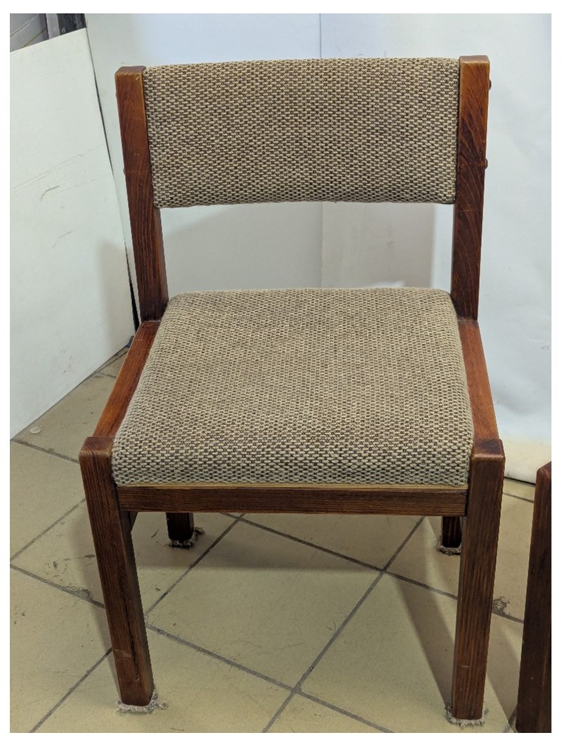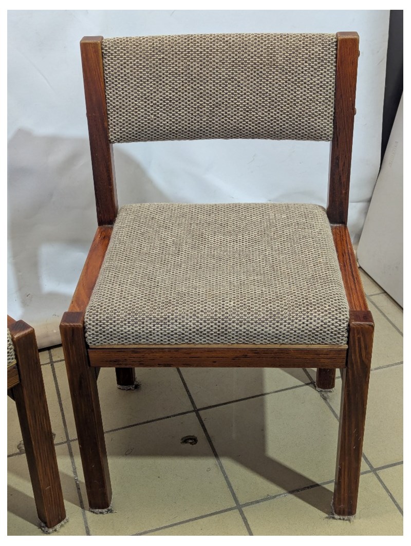 Dining chairs, solid timber frame, cream and brown finish upholstery Dimensions: H 87cm x W 55.5cm x D 44cm