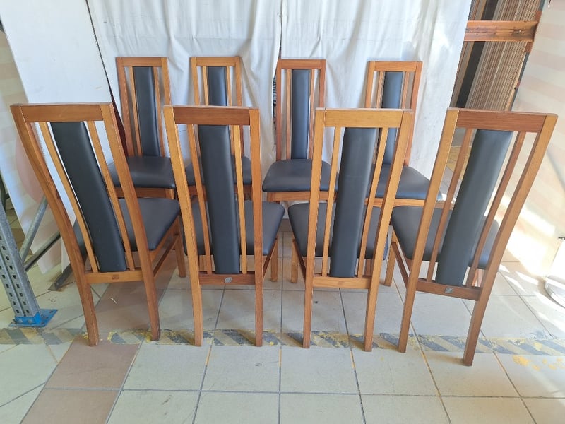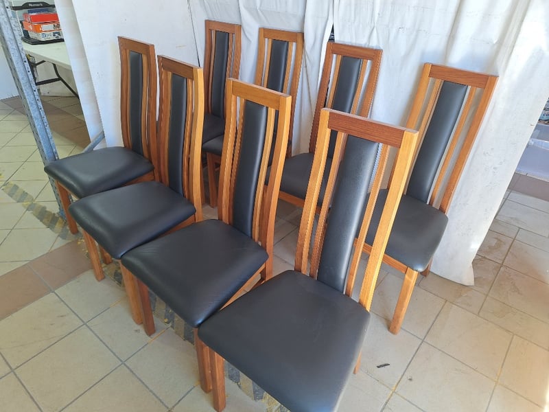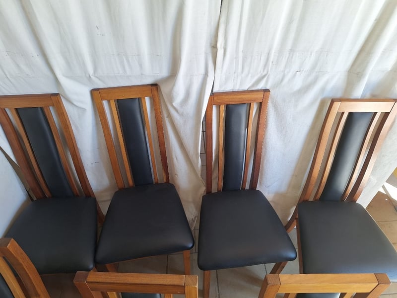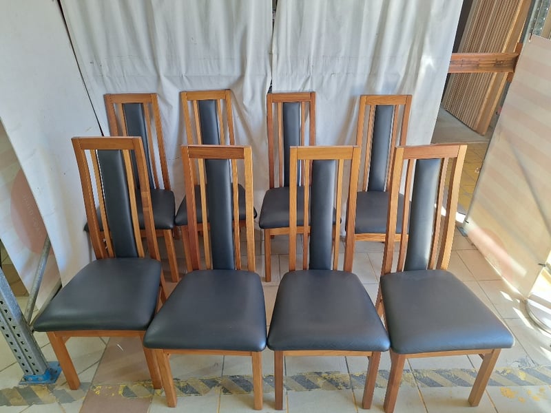 8 Dining Chairs With Seat Cushion, Timber Style, Brown & Black Finish