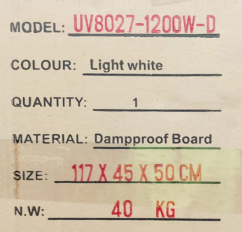 Bathroom Vanity, Model: UV8027-1200W-D, White, Qty: 6 to pallet, sold as pallet lot,