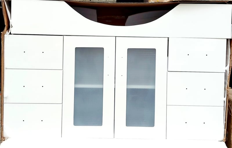Bathroom Vanity, P193-1200G, White, Glass doors,