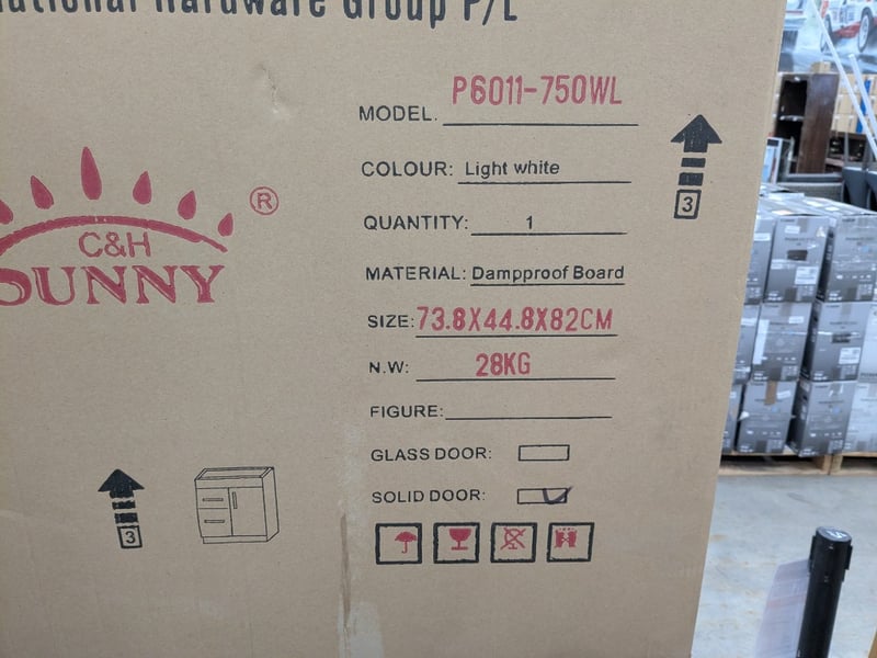 Bathroom Vanity, P6011-750WL, White Dampproof Board/Cabinet,