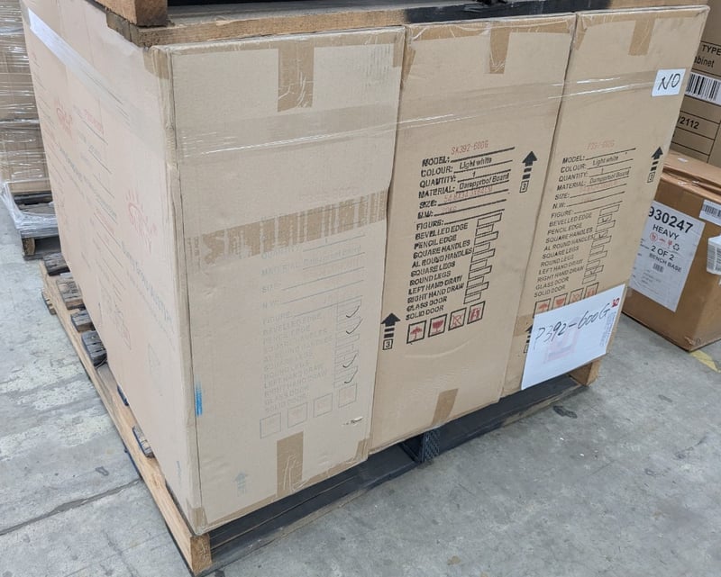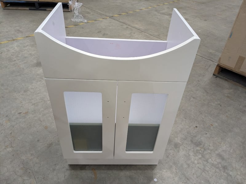 Bathroom Vanity, Model: P392-600G, White Dampproof Board/Cabinet, Dimensions:55x34x84cm Qty: 6 to pallet, Sold as pallet Lot