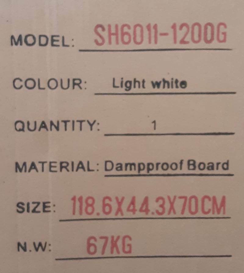 Bathroom Vanity, SH6011-1200G, White, Glass doors, Qty: 4 to pallet, sold as pallet lot,