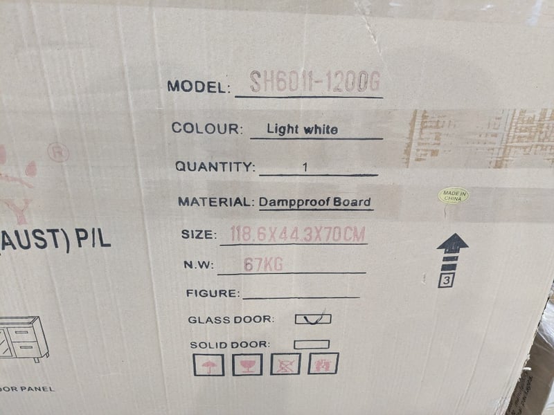 Bathroom Vanity, SH6011-1200G, Cabinet, White, Glass door,