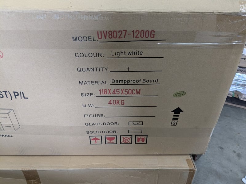 Bathroom Vanity, UV8027-1200G, White, Glass doors,