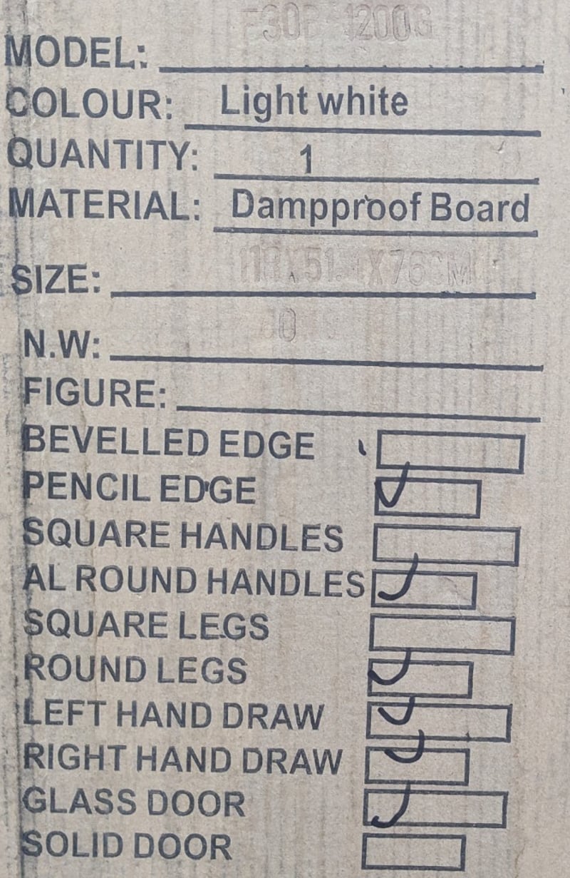 Bathroom Cabinet, F30B-1200G, White, Glass doors, Qty: 2 to pallet, sold as pallet lot,