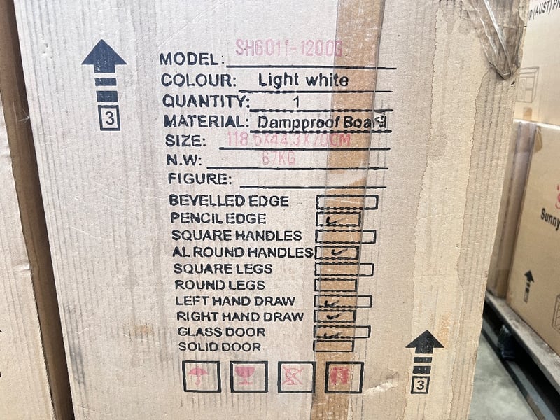 Bathroom Vanity, SH6011-1200G, White, Glass doors, Qty: 3 to pallet, sold as pallet lot,