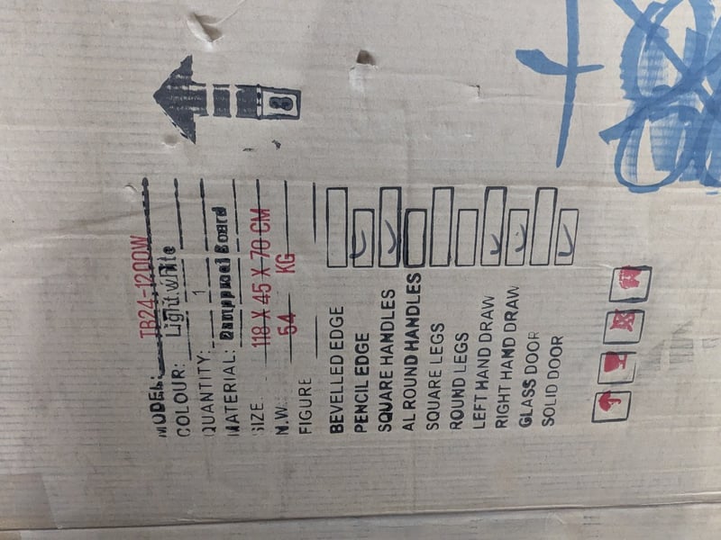 Bathroom Vanity, TB24-1200W, White, Qty 5 to pallet, Sold as pallet lot,