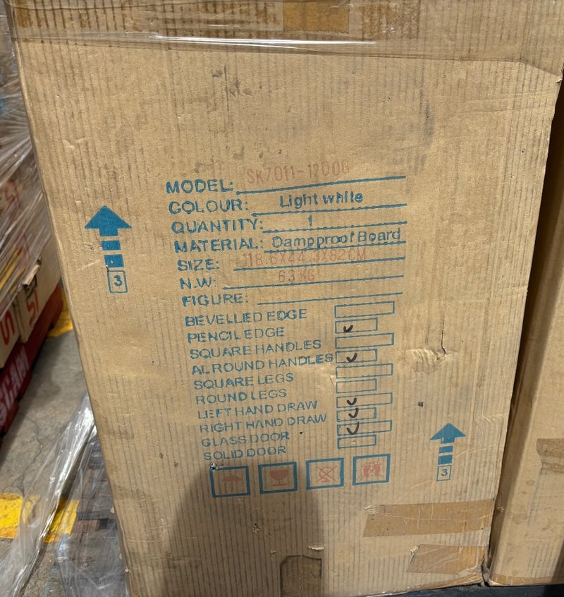 Bathroom Vanity, SK7011-1200G, White Qty: 3 to pallet, sold as pallet lot,