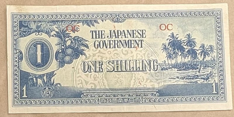 WWII JAPANESE OCCUPATION OF AUSTRALIA ONE SHILLING BANKNOTEBanknote Issued By The Japanese With Plans To Use It After Defeating And Ocupying Australia. While They Never Actually Pulled Of An Invasion Of Australia, These Notes Were Used In Some Pacific Islands That They Did Ocypy. Denominated In Australian Currency. Banknote Has Creases But In Much Better Shape Than Average For These Notes.584988+17