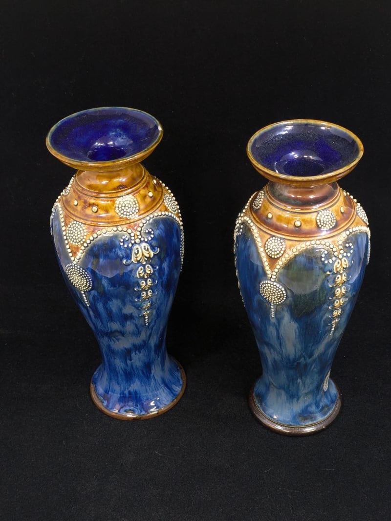 TWO ROYAL DOULTON LAMBETH MANTEL VASES
