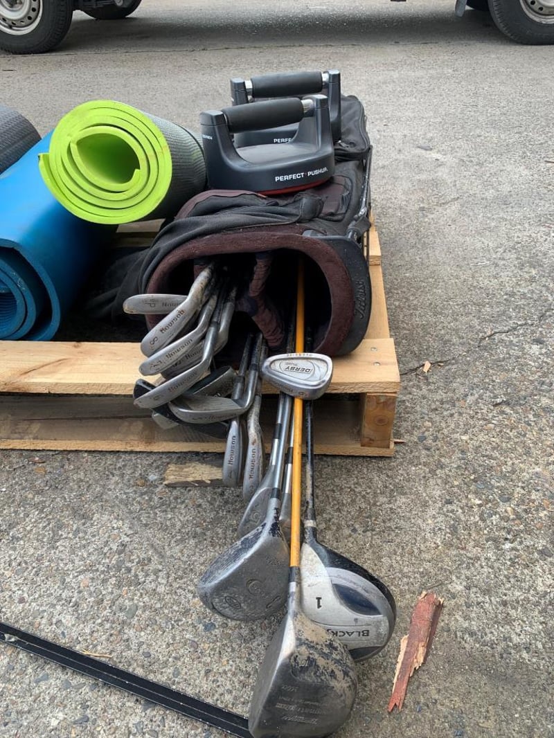 1 Set of Howson Derby Plus Oversize Golf Irons and Assorted Drivers in Titleist Bag1 Venom 22kg Cardio Spin Exercise Bike4 Gym Mats2 Body Rev Perfect Push Up Rotating Handles Workout Set
