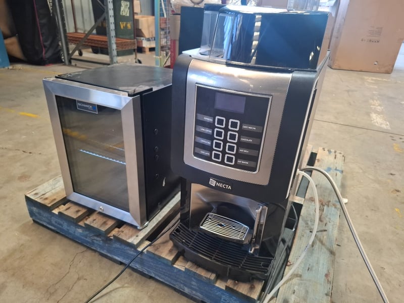 1 x Necta Korinto Prime automatic coffee machine, 34cm W x 70 cm D x 54 cm H.1x Schmick mini bar fridge, 35 cm ( W) x 44 cm (D) x 49 cm (H)SOLD AS LOT