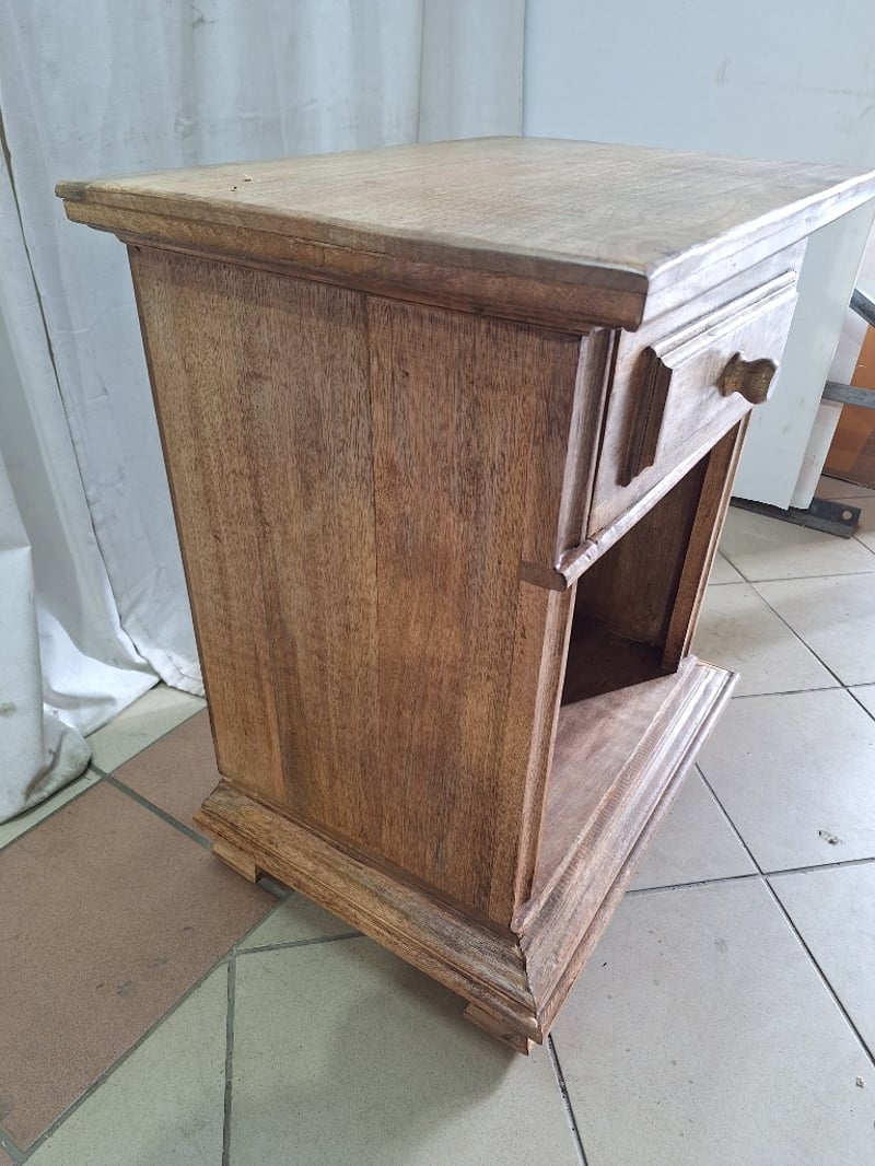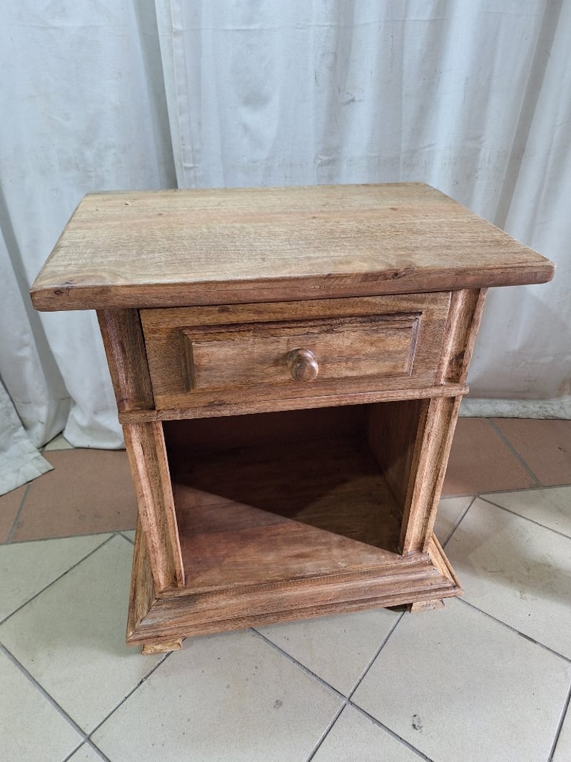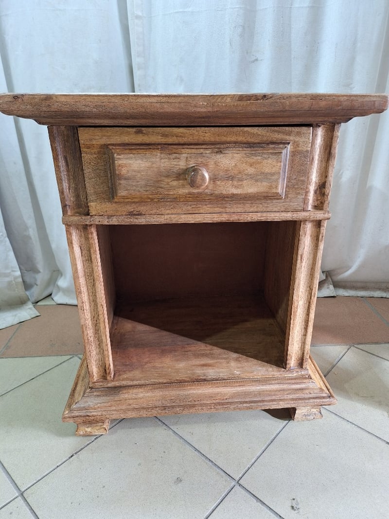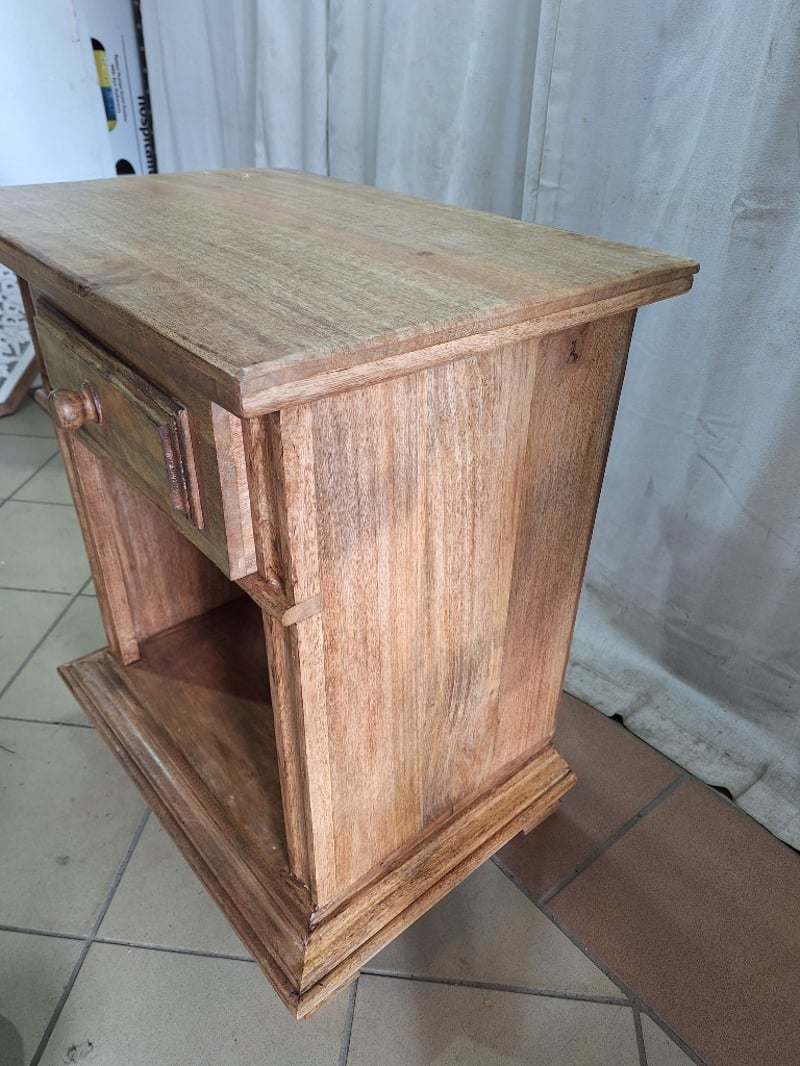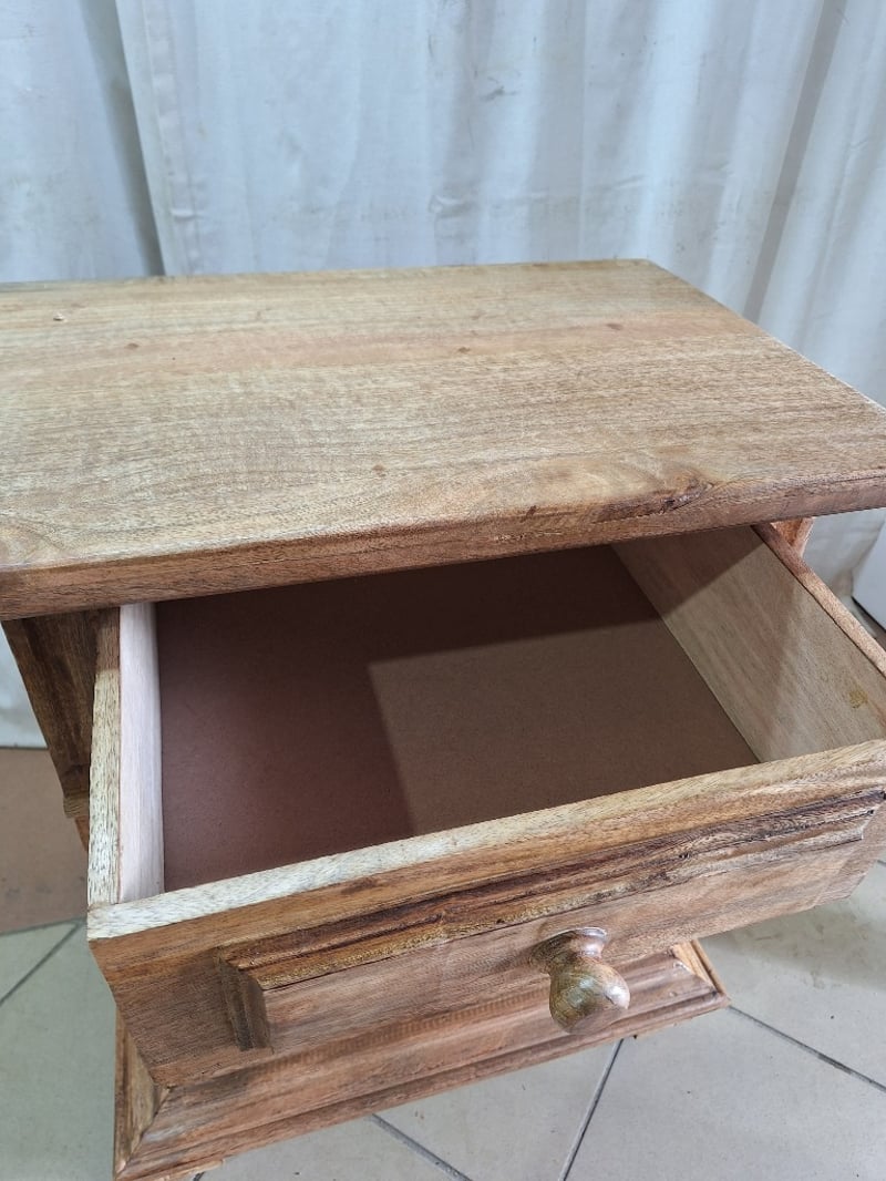 Bedside Table With A Single Drawer & An Open Shelf, Timber Style, Brown Finish