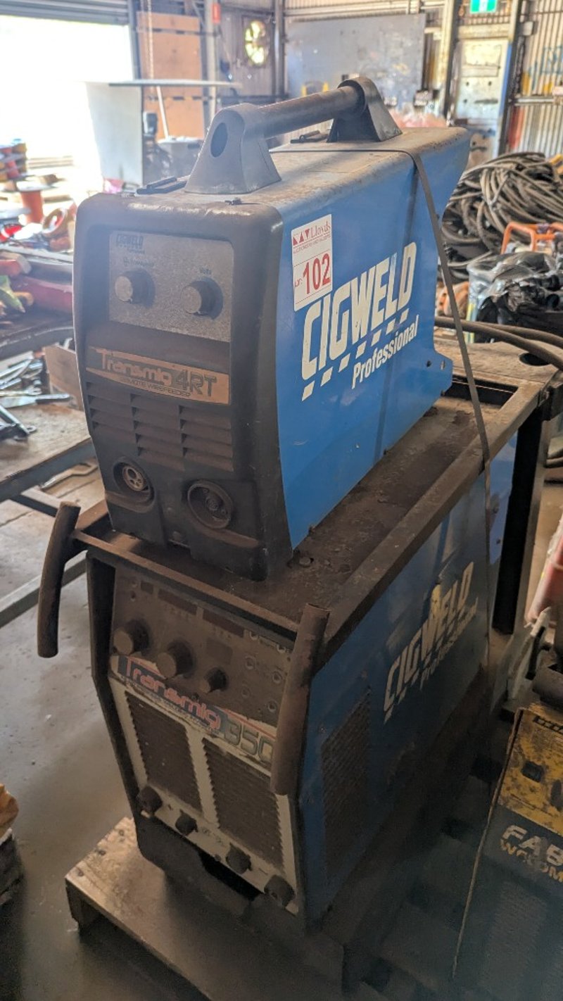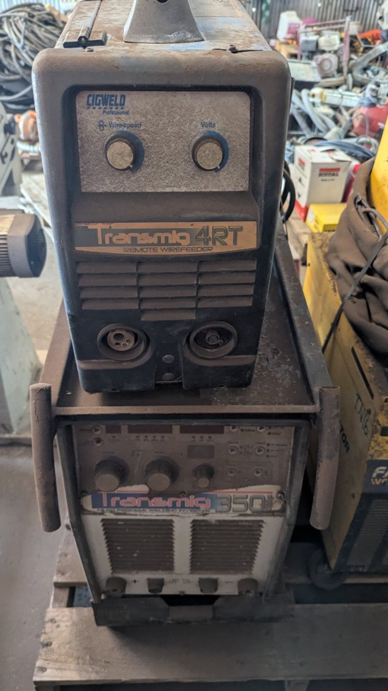 Cigweld Mig Weld Unit, Includes Transmig 4RT Remote Wirefeeder, Transmig 350i Inverter, On Trolley, Note: Wheels on Trolley Need FixingLocation: Macksville, NSW