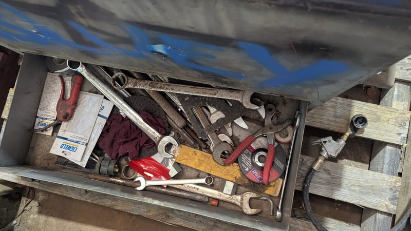 Metal Tool Box with Contents , One Drawer, Includes Spanners, Welding Hose and Gun, Battery Chargers andore, Dimensions 65cm(H)×95xm(W)×65cm(D)Location: Macksville, NSW
