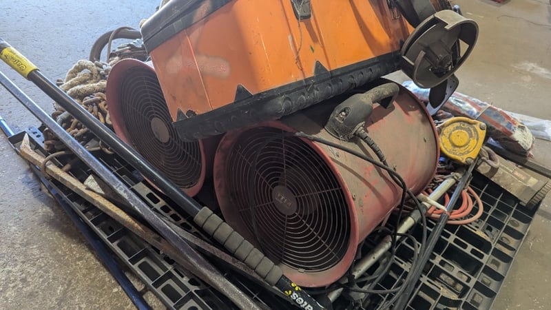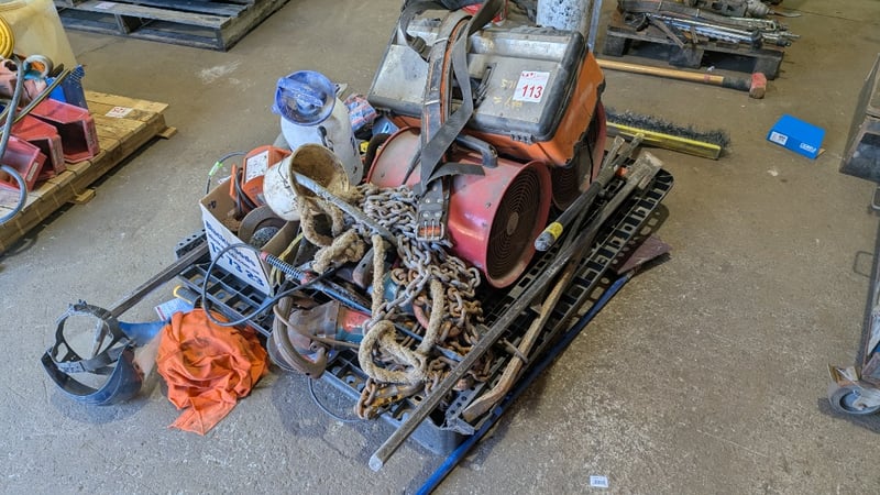 Mixed Pallet Bundle, Includes Turbo Fans, Tool Box, Block and Tackle Pry Bars, Grinders and More, Quantity Per Lot