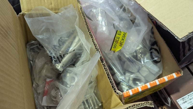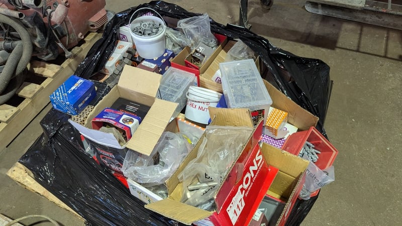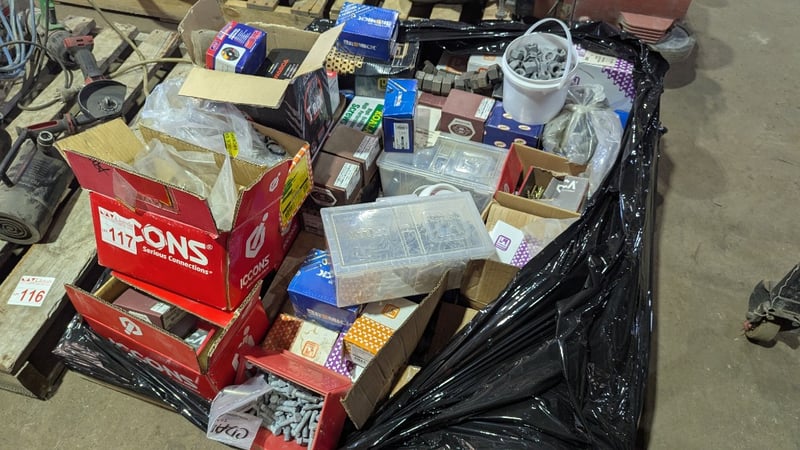 Mixed Nuts and Bolts, Screws, Various Sizes and Styles, Brands Include Hobson, Bremick, Accons, Quantity Per Pallet