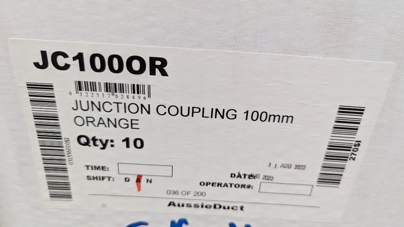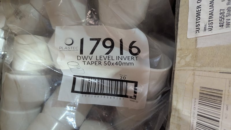 Junction Coupling 100mm Orange, DWV Level Invert Taper 50 × 40mm and More, Quantity Per Lot Sold As LotLocation: Macksville, NSW