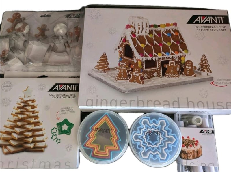 Brand New: AVANTI GINGERBREAD HOUSE 10 PIECE BAKING SET+ 18 Piece Icing Set+ Cookie Cutters.