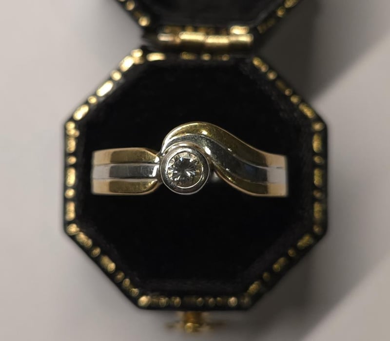 Markings: Inside band marked 750 (yellow gold) and 375 (white gold)