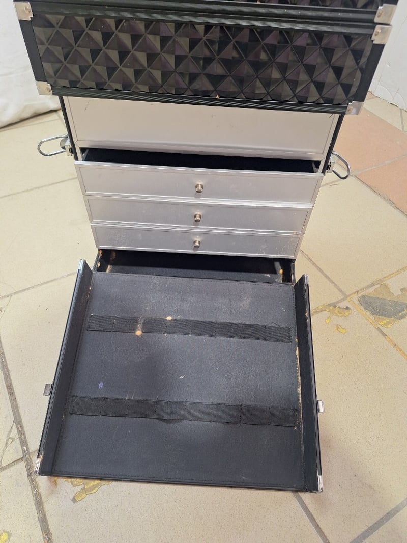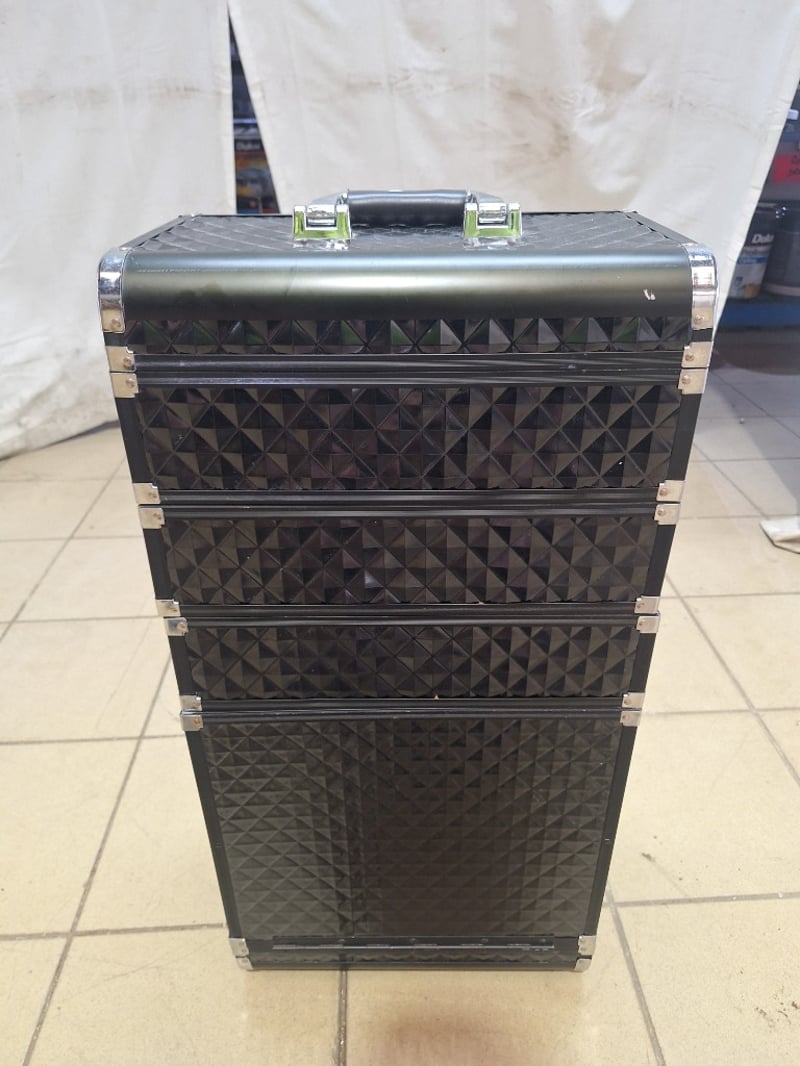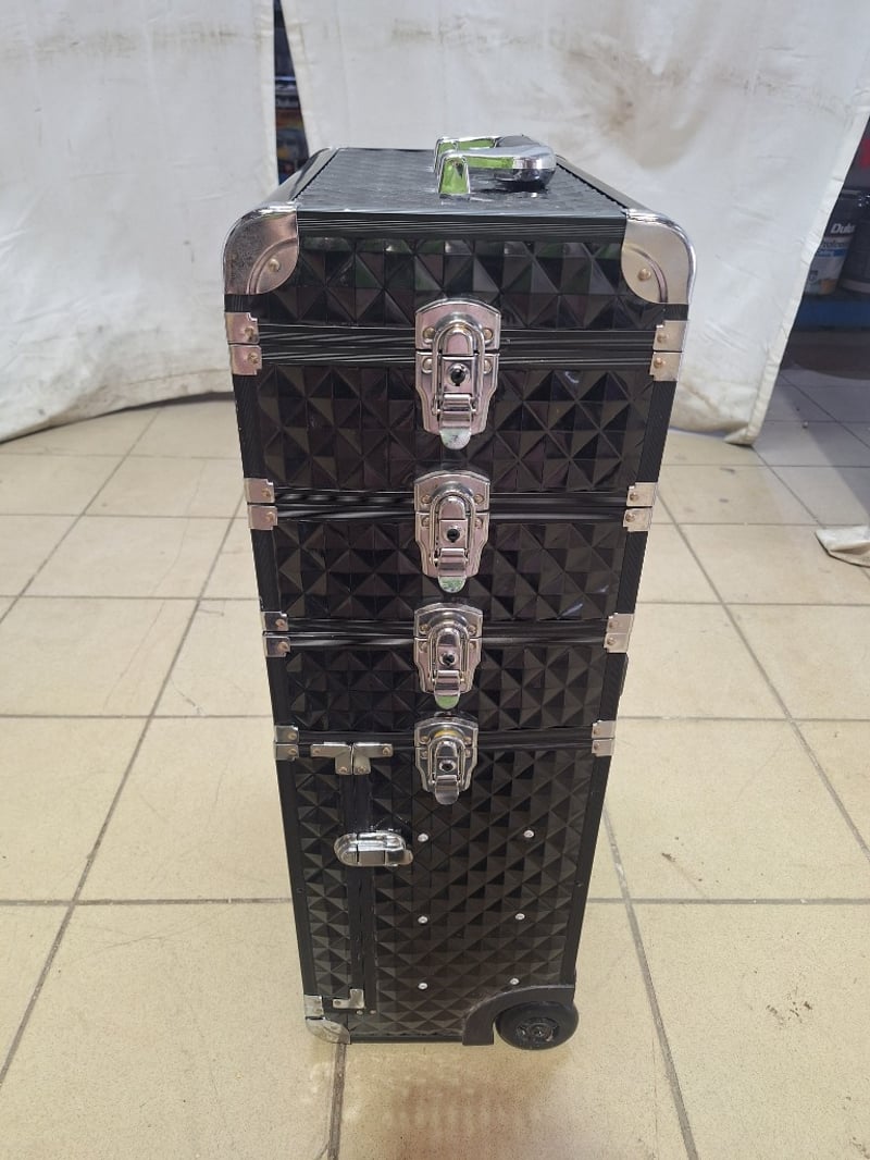 Professional Makeup Trolley Cosmetic Case, Multiple Storage Areas, Black Finish