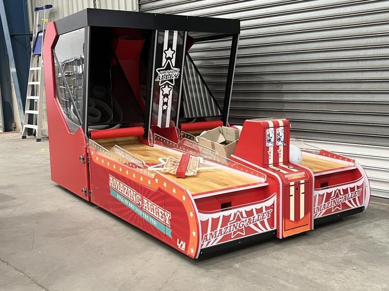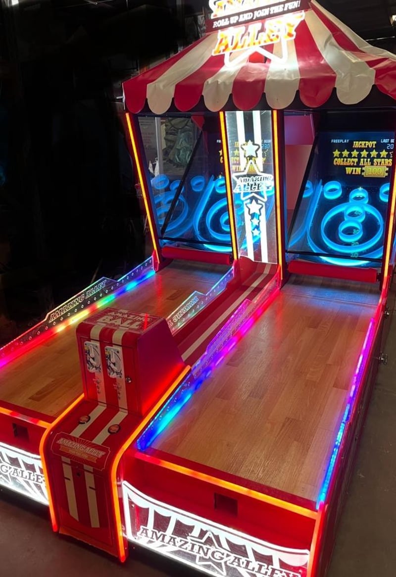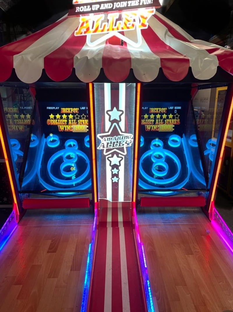 Amazing Alley Bowling Arcade Manufactured by LAI Games 2 player Bowling Arcade Fully working Excellent condition Set on Free Play Easy to put together and operate Comes with Manual and some spare parts Installed Dimensions: H: 104″ W:68″ D: 116.5″