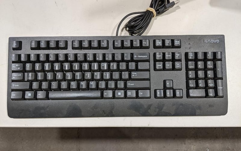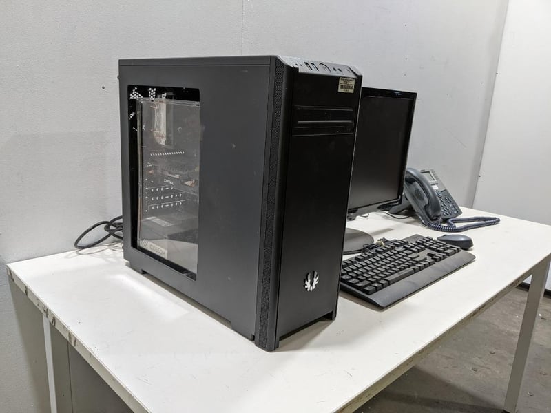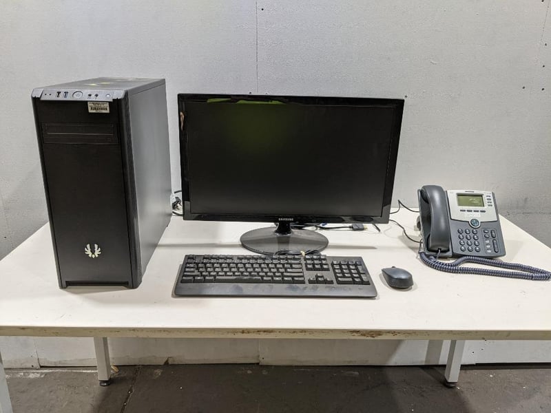 Office Workstation Setup – PC, 24" Samsung Monitor, Lenovo USB Keyboard, Logitech Wireless Mouse, Cisco Office Phone Note: Signs of wear, PC has structural impairment - refer to photo. Power cord for monitor not included