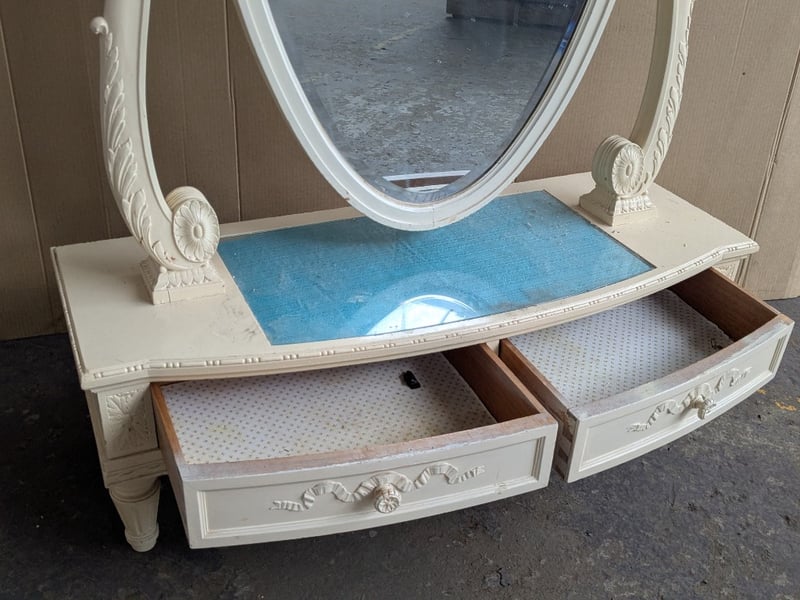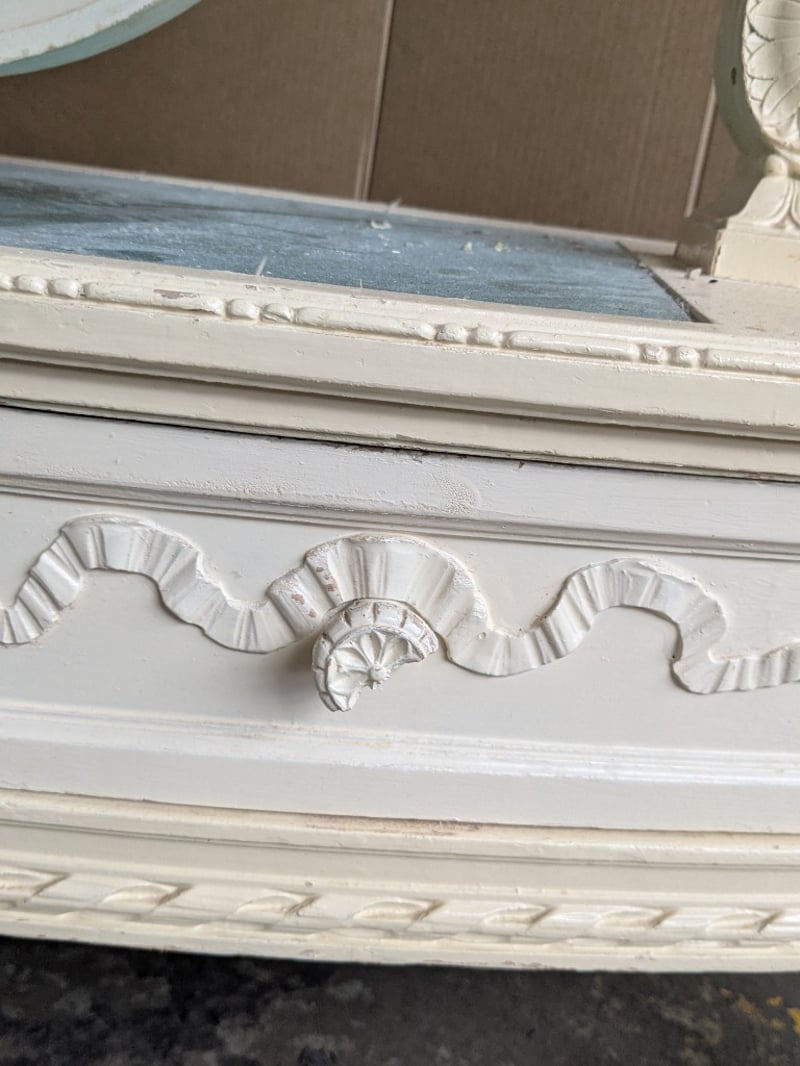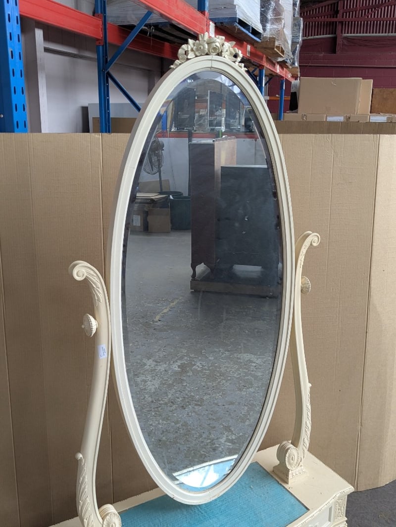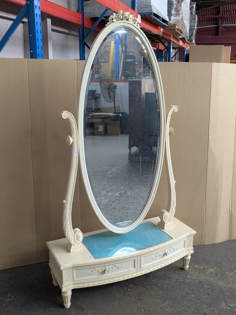 Cabinet, french style off-white cabinet and gilt oval cheval mirror