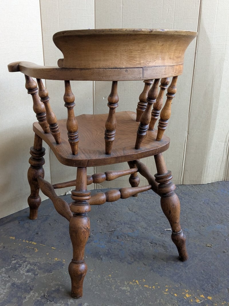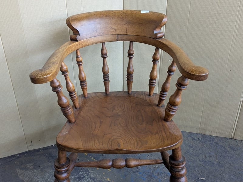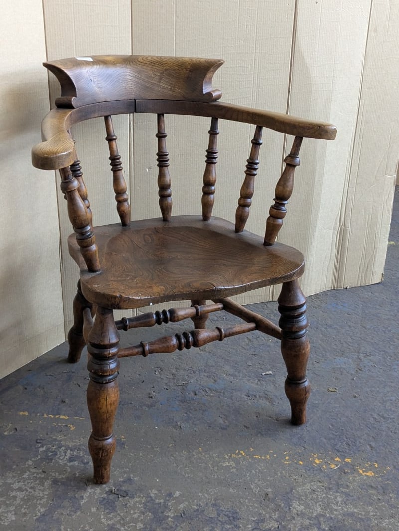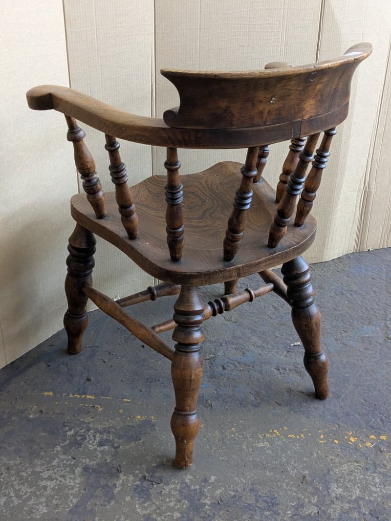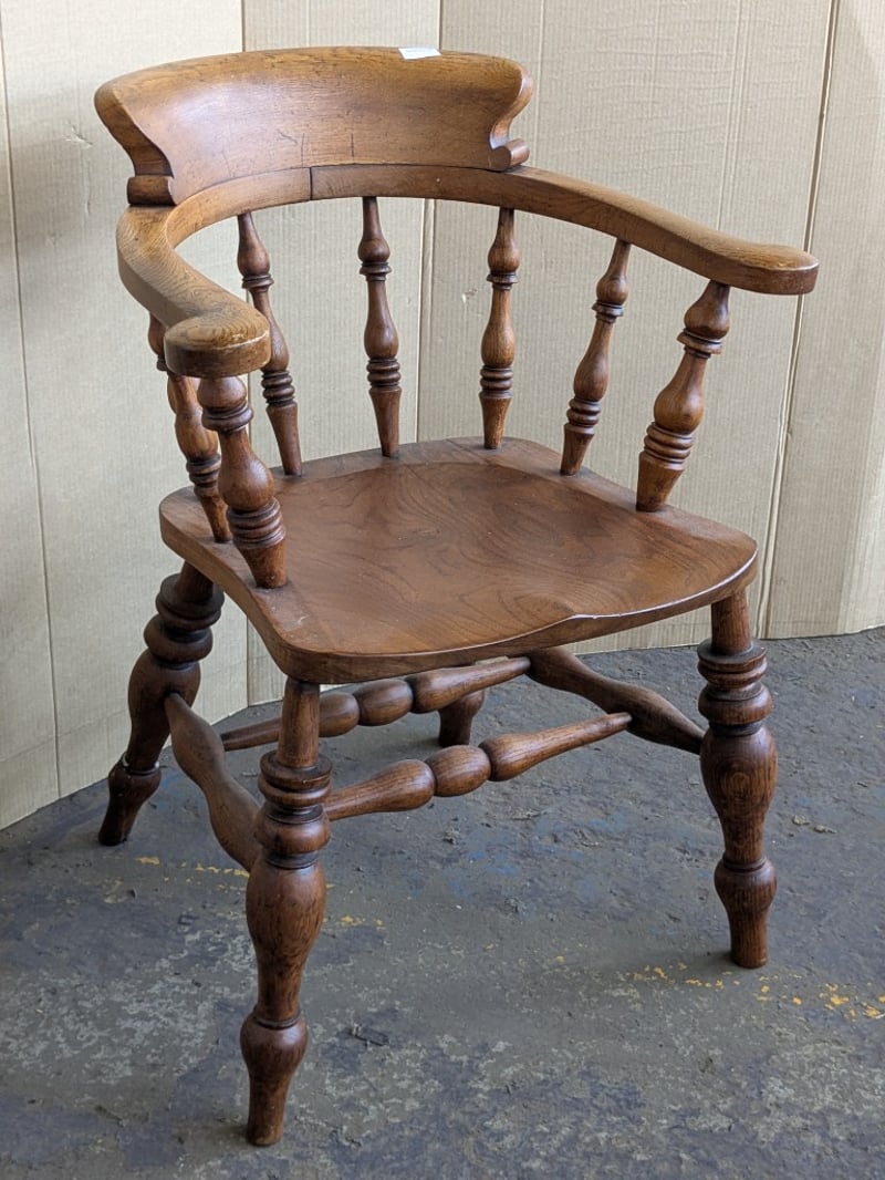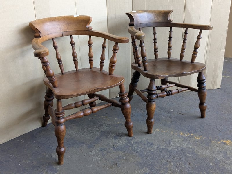Chairs , 2x timber bow back smokers captains armchairs Dimensions 84cm H x 63cm W x 57cm D