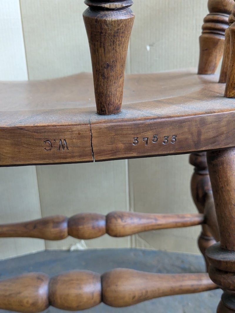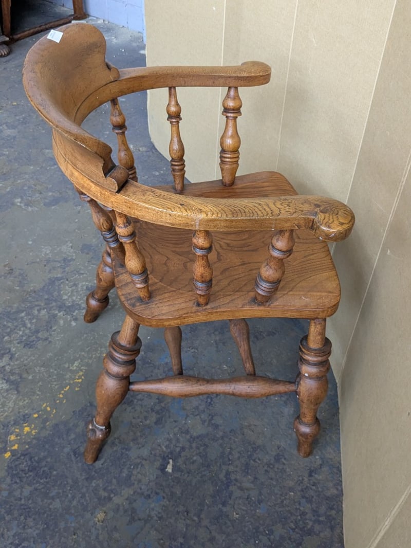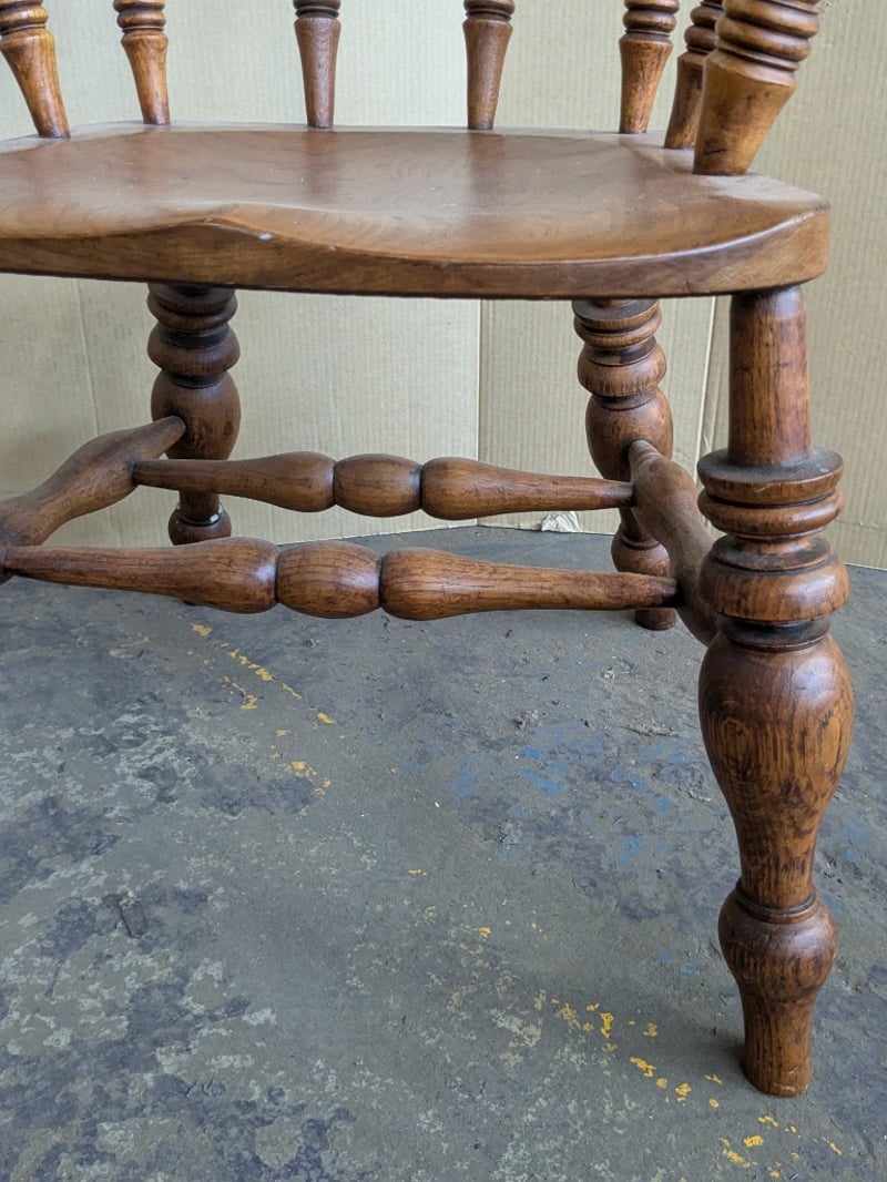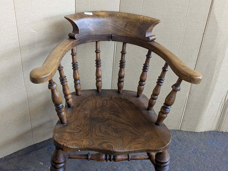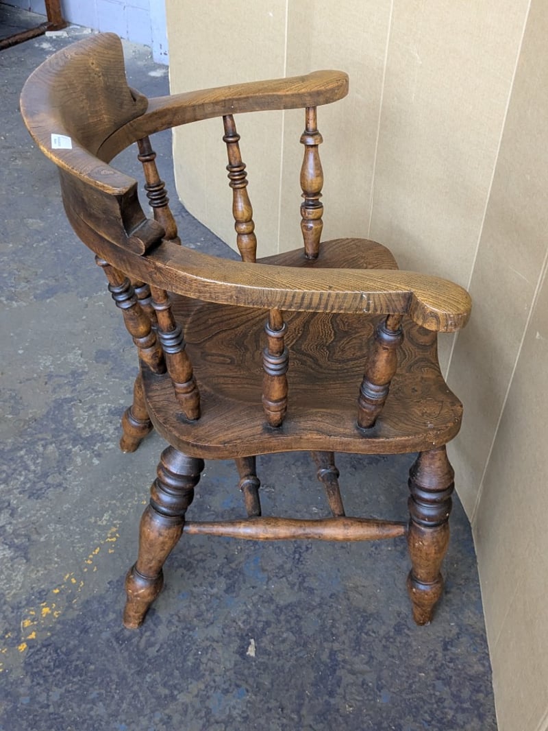 Chairs , 2x timber bow back smokers captains armchairs Dimensions 84cm H x 63cm W x 57cm D